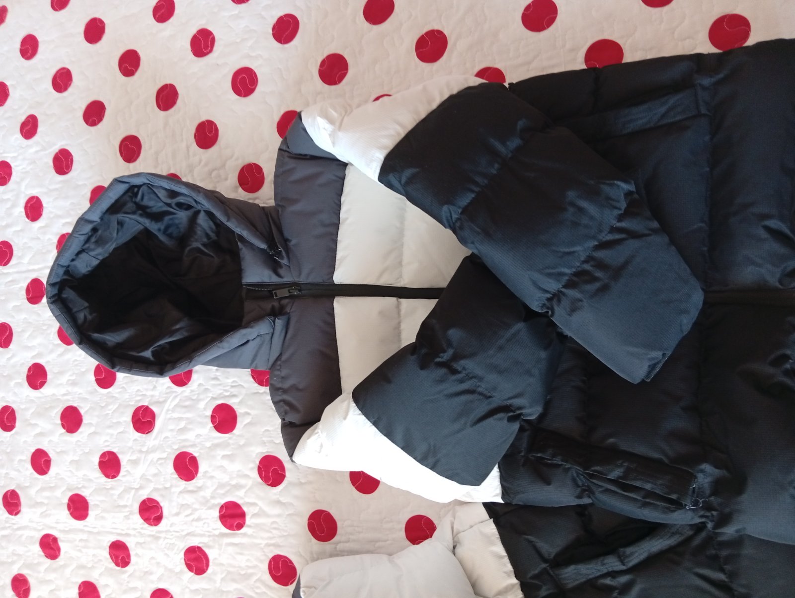Top stav. Je tenšia,ale zateplená, na chladnejší prechod,miernejšiu zimu. Dĺžka 53cm,šírka 43cm, rukáv 59/50/40cm.