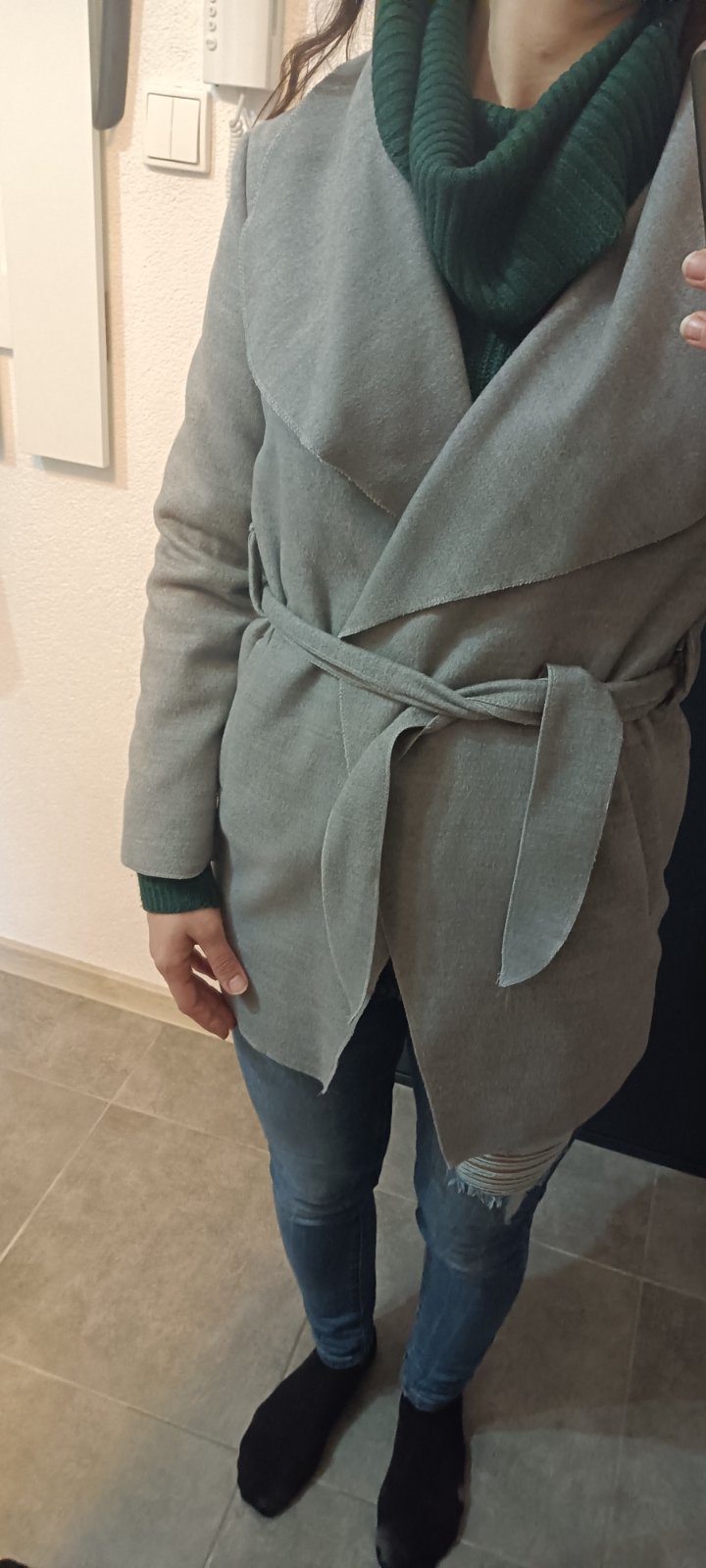 Parádny kabátik, má kapucňu, vrecká, obsah vlny 70%