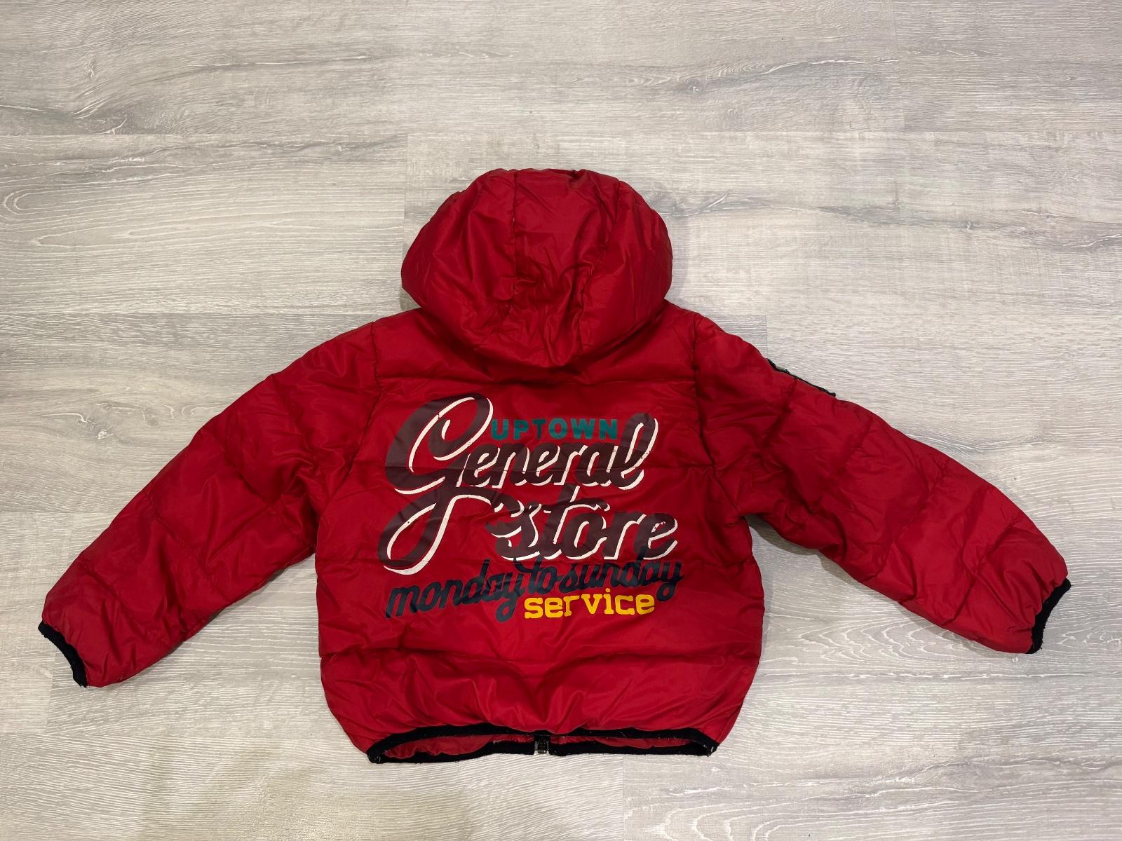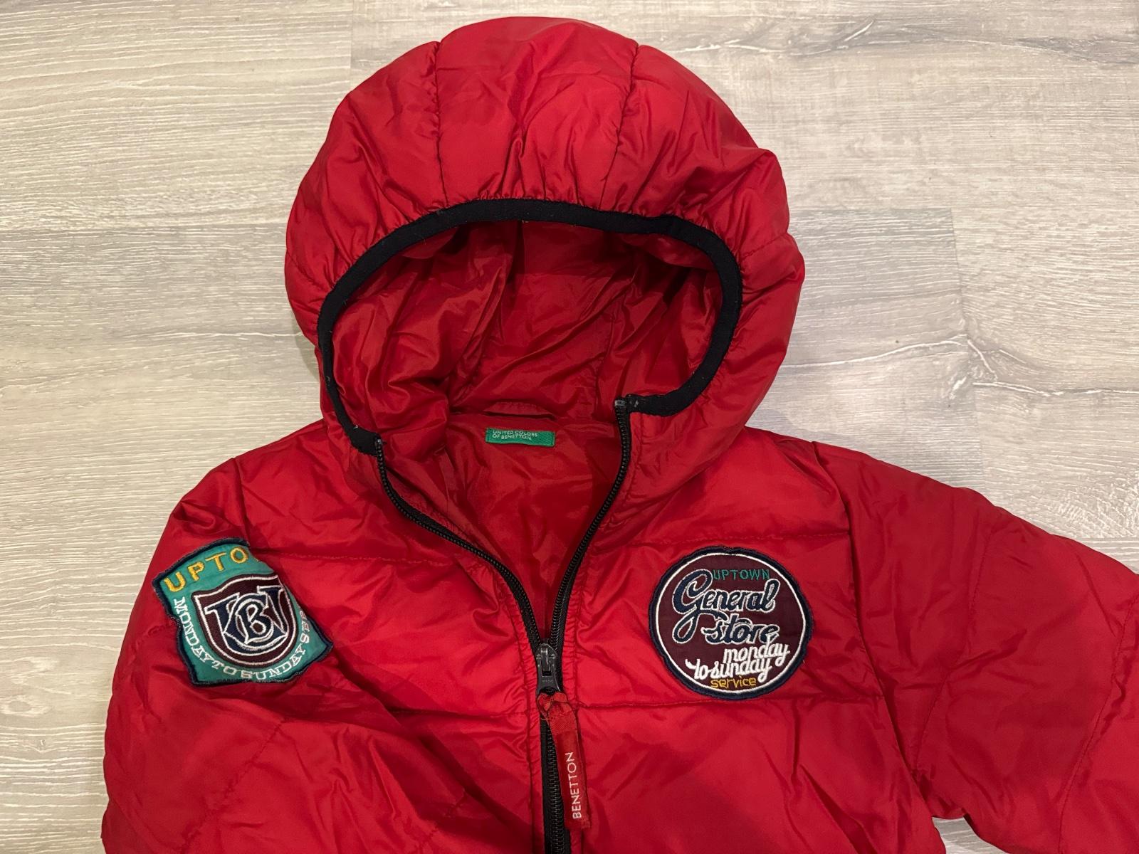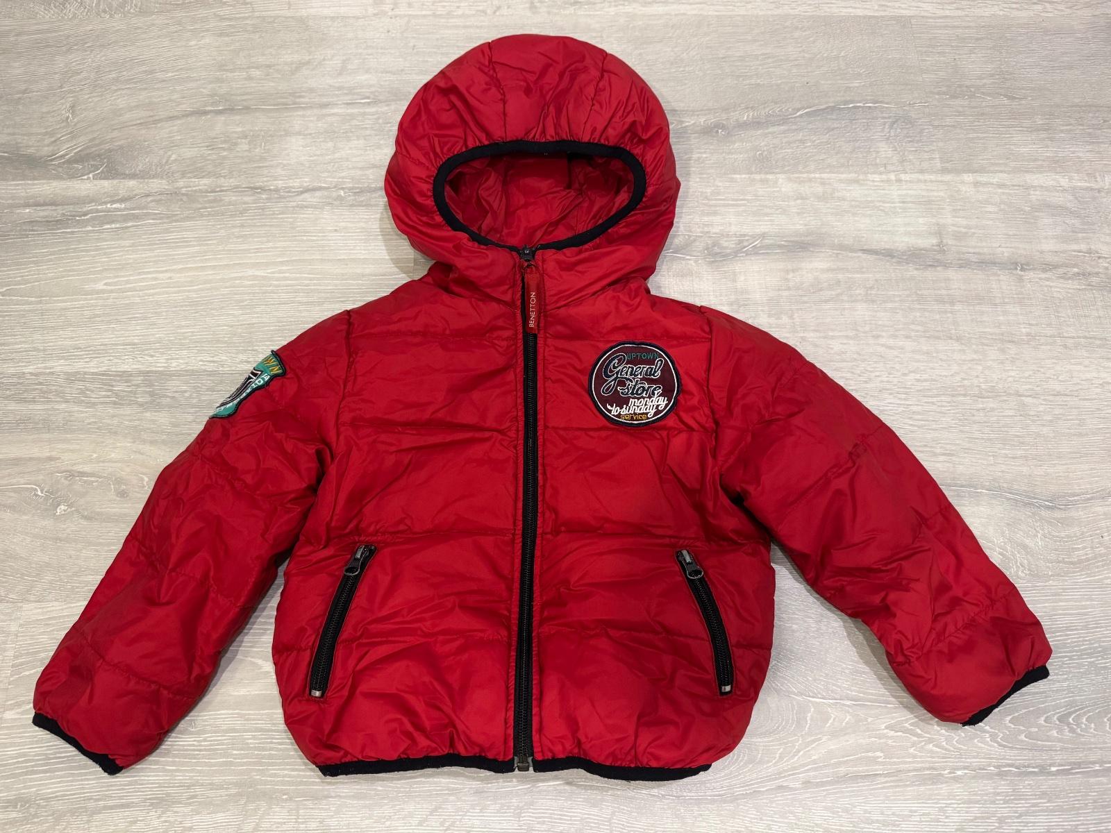 Predam krasnu zachovalu unisex zimnu paperovu bundicku znacky Benetton velkost pisana xxs cca 110cm.