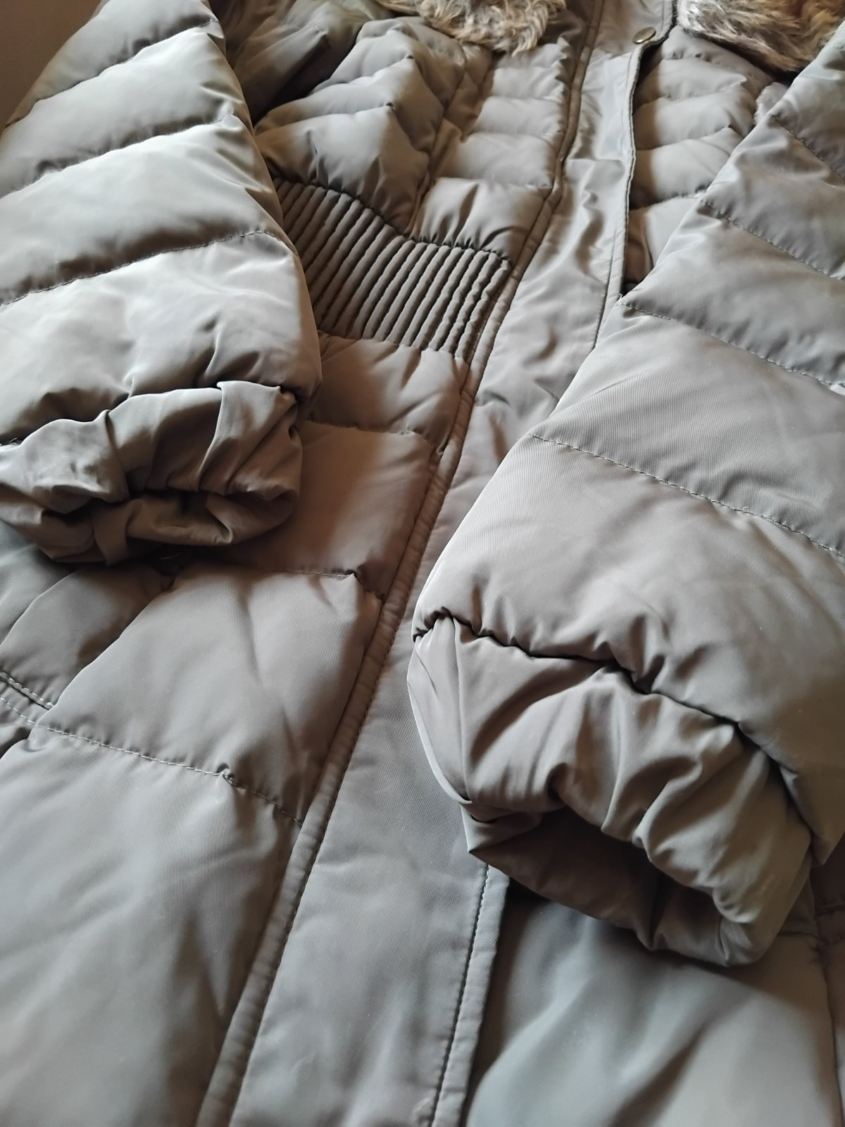 Pekna bunda s malymi nedostatkami, semtam z nej vyliezaju pierka, vzadu mala zarobena dierka. Este posluzi.