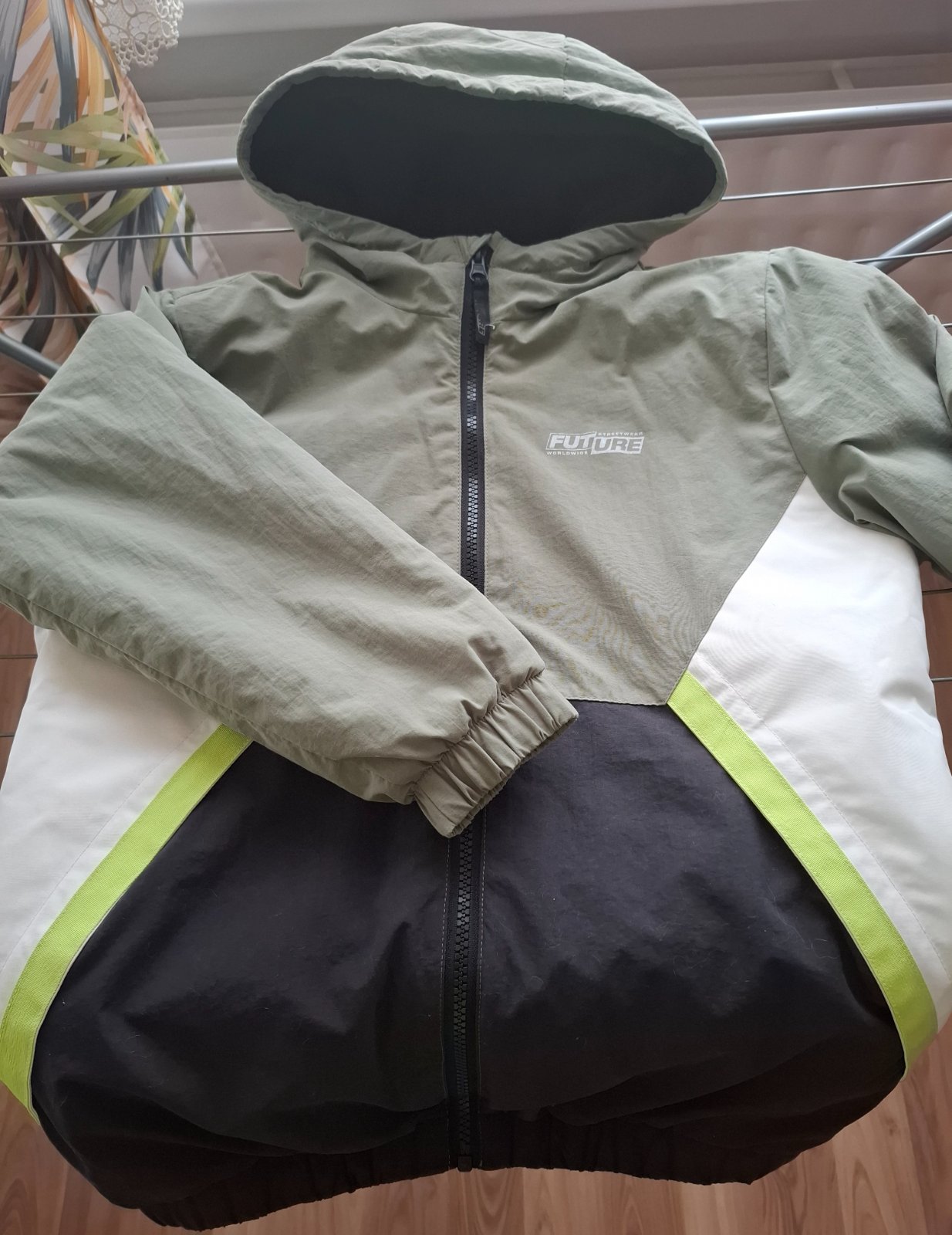 Bunda vo veľmi dobrom stave,možnosť stiahnutia na páse, na rukávoch, na kapucni, veľkosť 140-146, šírka 43cm,dĺžka 58cm,dĺžka rukáva 55cm