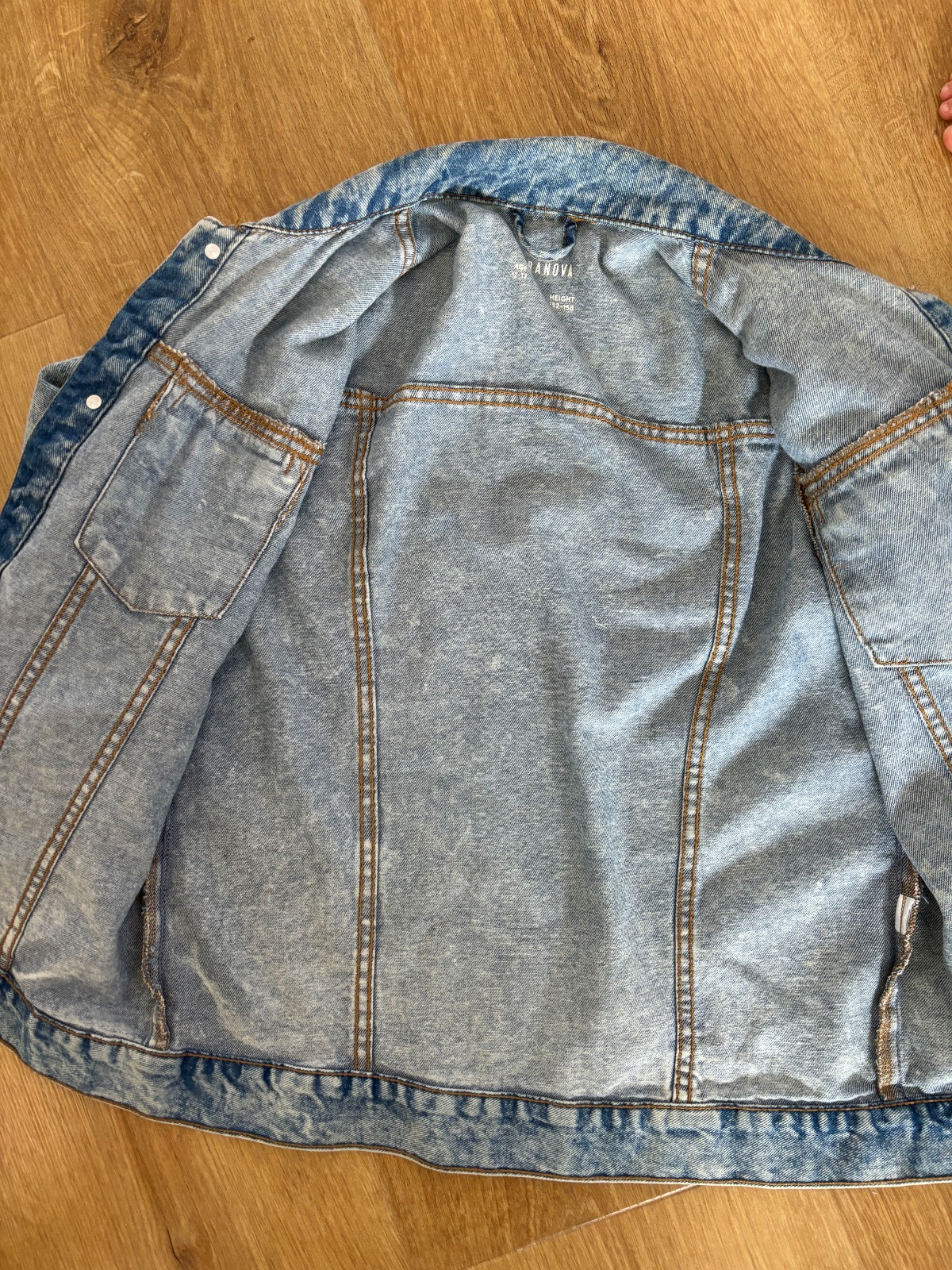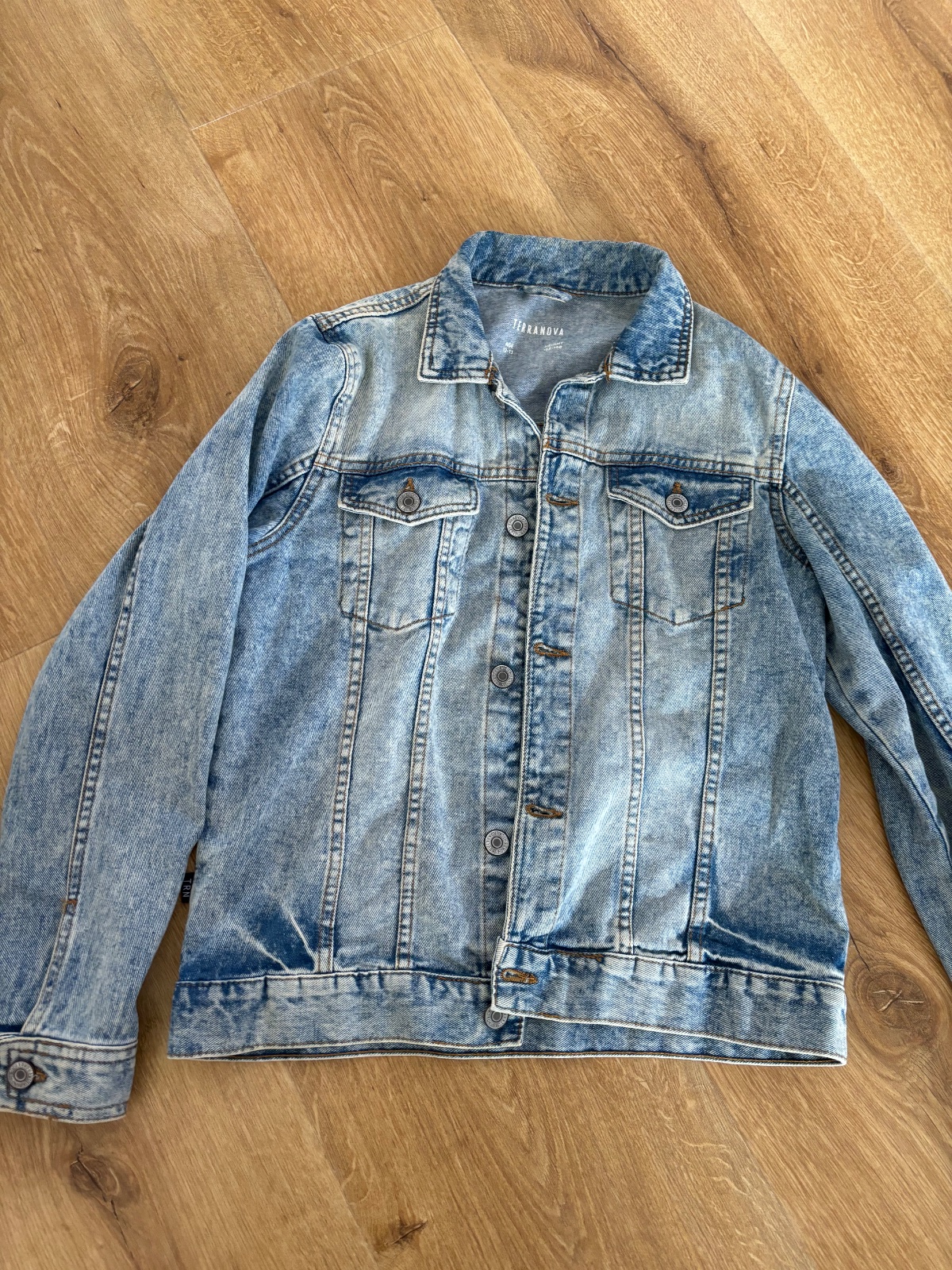 Prechodna bunda pre chlapcov:) Nosena max.5x Bez poškodenia... cena 13€ + poštovne Celkova dlžka od krku 58 cm- rukáv 58cm tiez , šírka 46cm