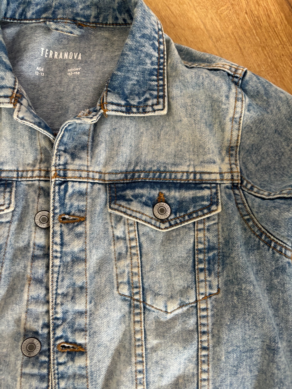 Chlapcenska kozenkova bunda zn. Terranova. Velmi prijemna, mäkká. Na rukave drobne scuchnuta koza, malo viditelne.