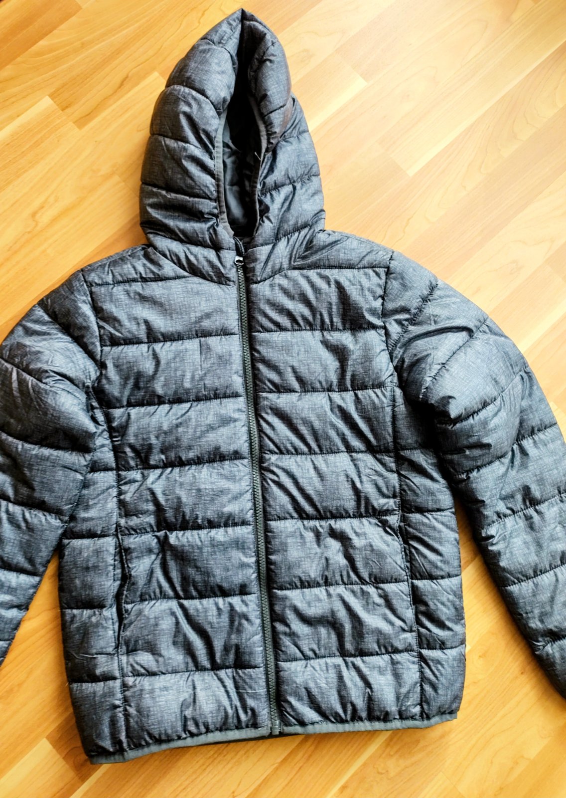 Predám nosenú ľahkú bundu na jar, jeseň prípadne teplú zimu po synovi, bežné známky nosenia. Veľkosť 152, 11-12 rokov. Rozmery: dĺžka 60cm, šírka pod pazuchami 44cm, rukáv od krku 67cm, od ramena 5...