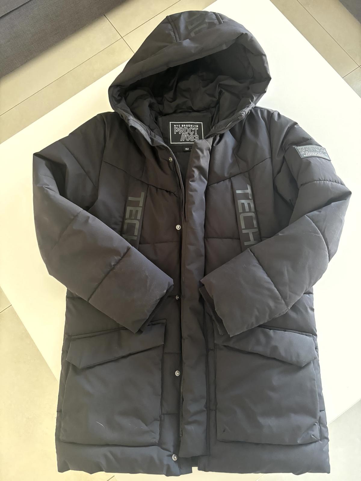 Chlapčenská zimná bunda zn. C and A, veľkosť 152. Zapínanie na zips aj cvoky. Bunda má kapucňu, vpredu dve vrecká, parkový strih. Výborný stav, je ako nová.