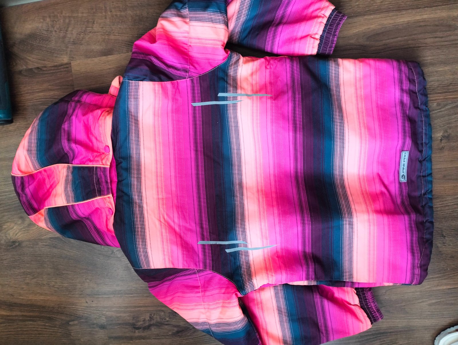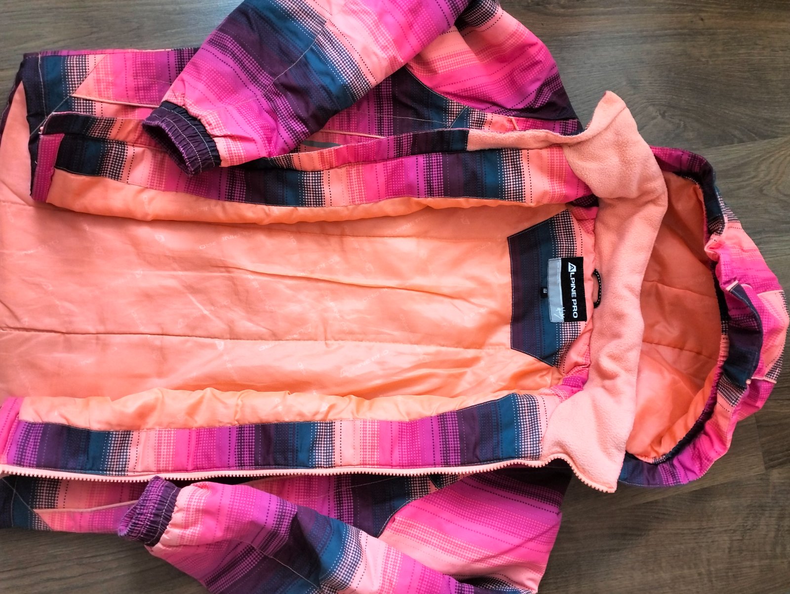 152/158,veľmi pekný stav,bez poškodení,reflex.prvky,kapucňa sa dá odopinat,dĺžka= 63 CM,rukáv od krku= 66 CM,šírka 46 cm