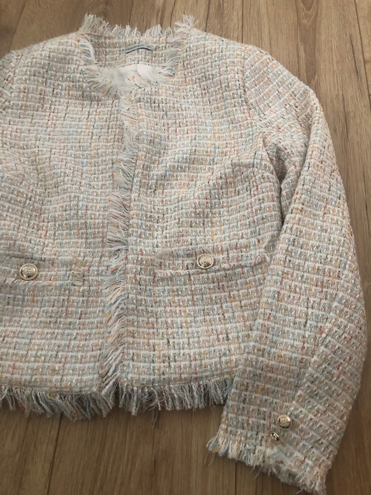 Sako velk.34 ale mne príde skôr 36, dĺžka 53, šírka pod pazuchami 44, dĺžka rukáva od ramena 60 top stav