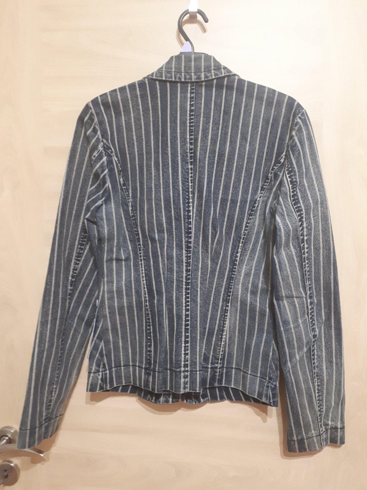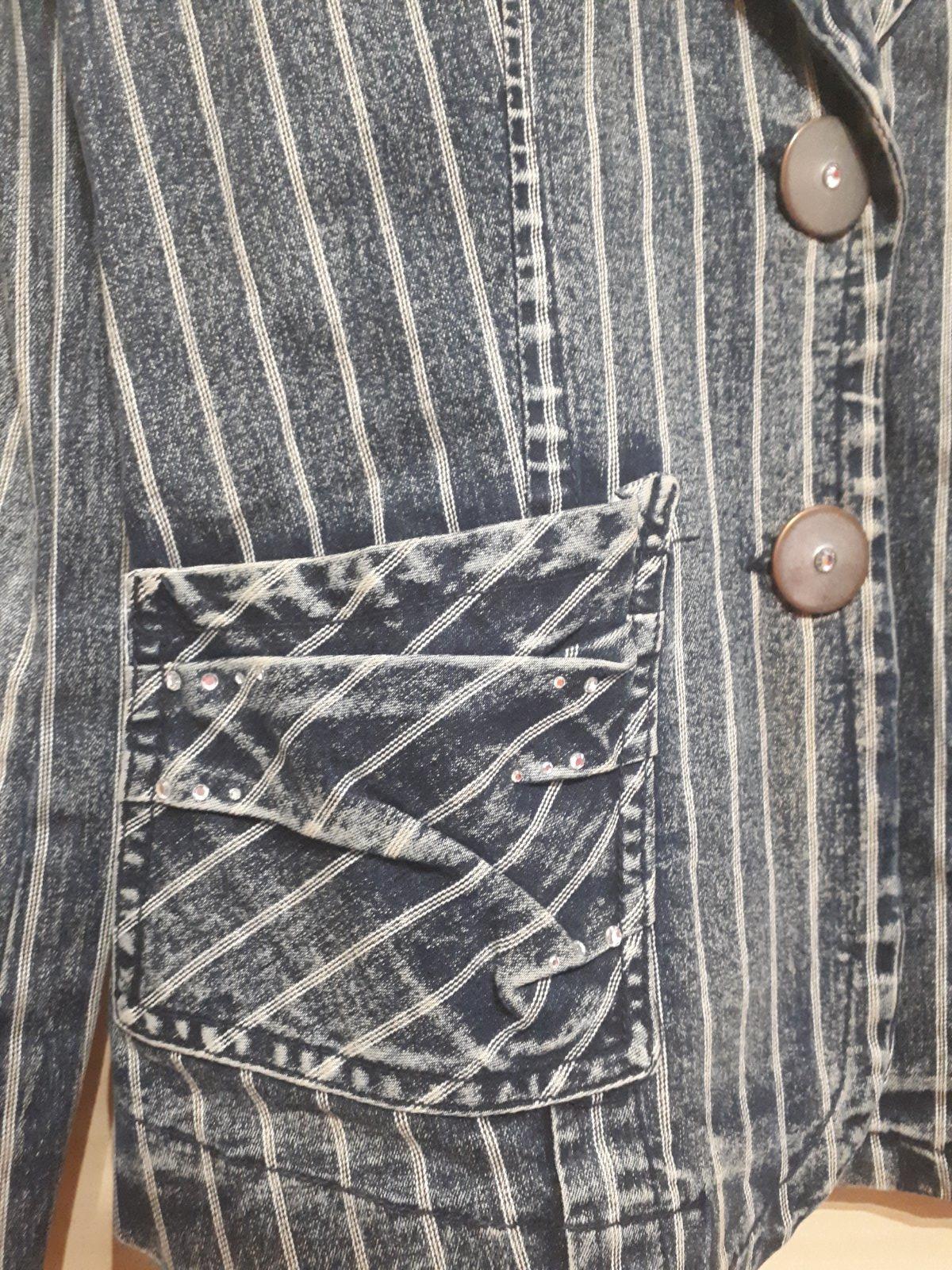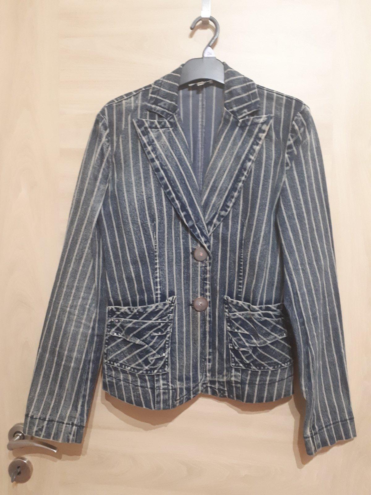 Riflove sako s pasikavym vzorom, zdobene kamienkami. Original M ale presite na S-XS. Dlhe rukavy, velmi zachovale.