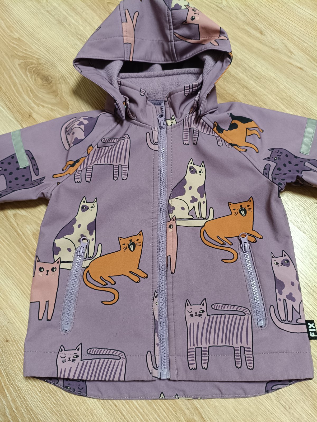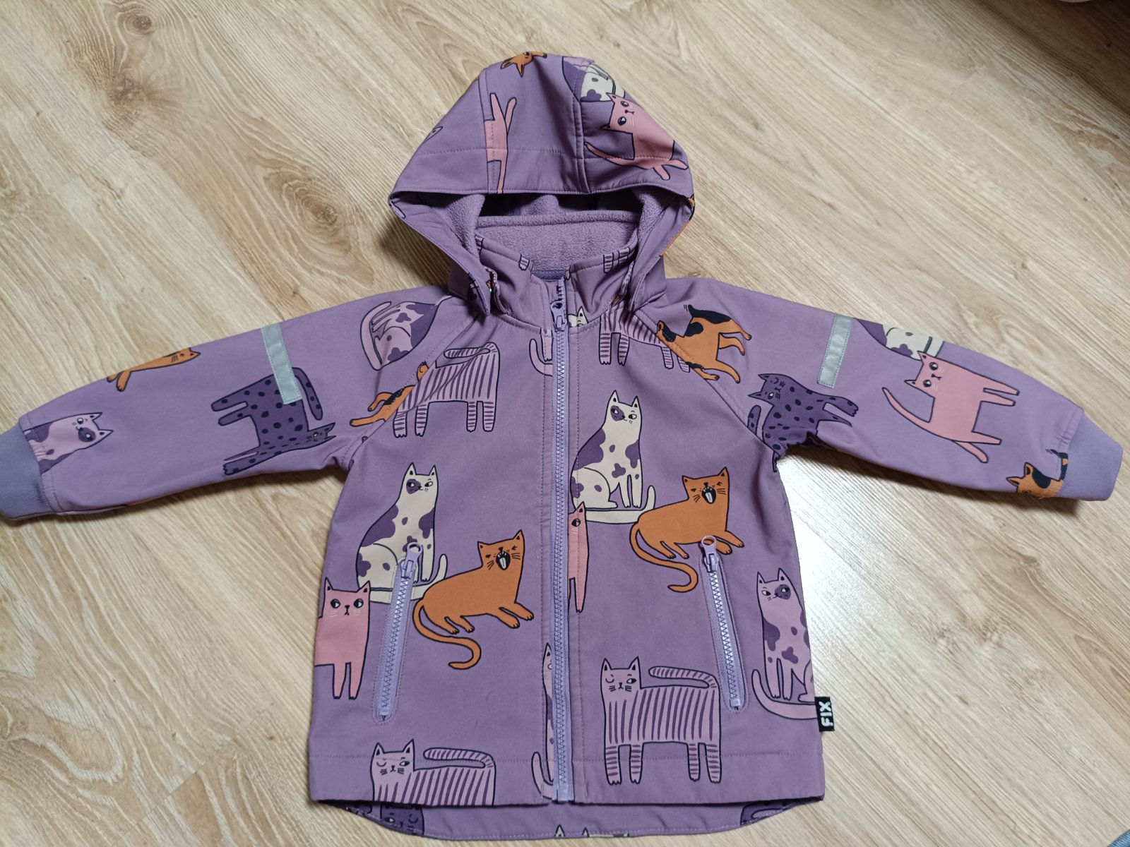 Skvelá bundička, v dobrom stave. Nosenie vidieť len na zipsoch , bežce trochu ošúchané. Kapucka sa dá oddeliť. Dĺžka 41.5cm , šírka 33cm, dĺžka rukávov spodná 27.5cm..