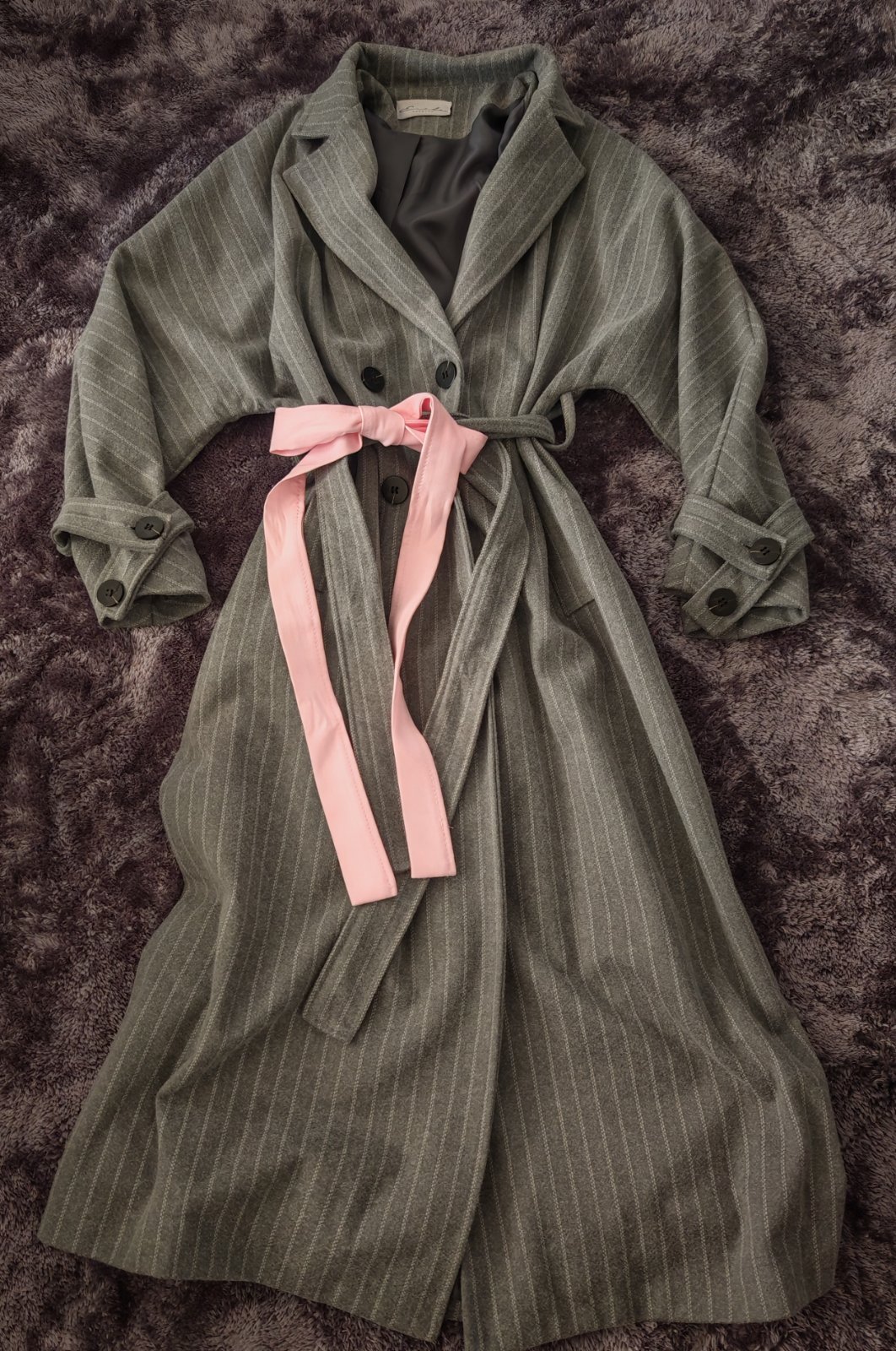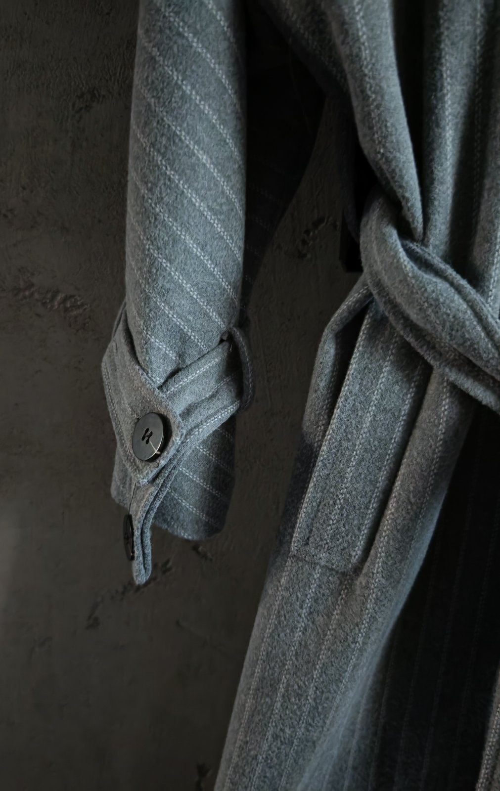 Svetlosivý dlhý pruhovaný kabát SEPPY