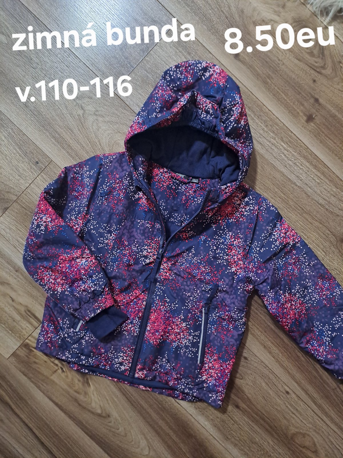 Zimná bunda veľkosť 110/116. Bola nosená je potrebné ešte oprať našla som nejaké fľaky na ňom ale malo by to zmiznúť opratim. Má na sebe reflexné prvky a zips je funkčný. Rozmery: Dĺžka 49cm, Šírka...