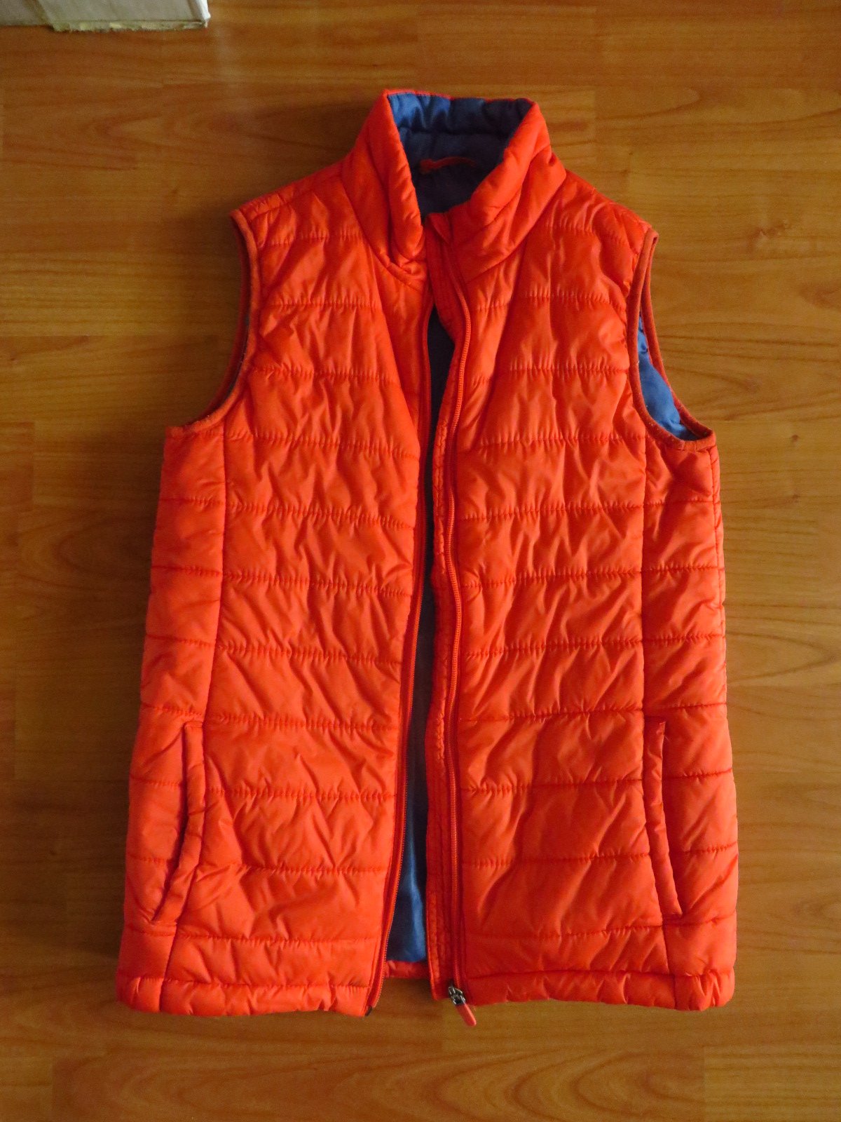 Predám nosenú oranžovú prechodnú vestu. Veľkosť je 146/152, kupovaná bola v Tchibe. Na poslednej fotke, na chrbte je v pravo vidieť poškodenie, išlo o zatrhnutie, ktoré som synovi zašila. Je to zohľadnené v cene. Vesta vie ešte dobre poslúžiť.