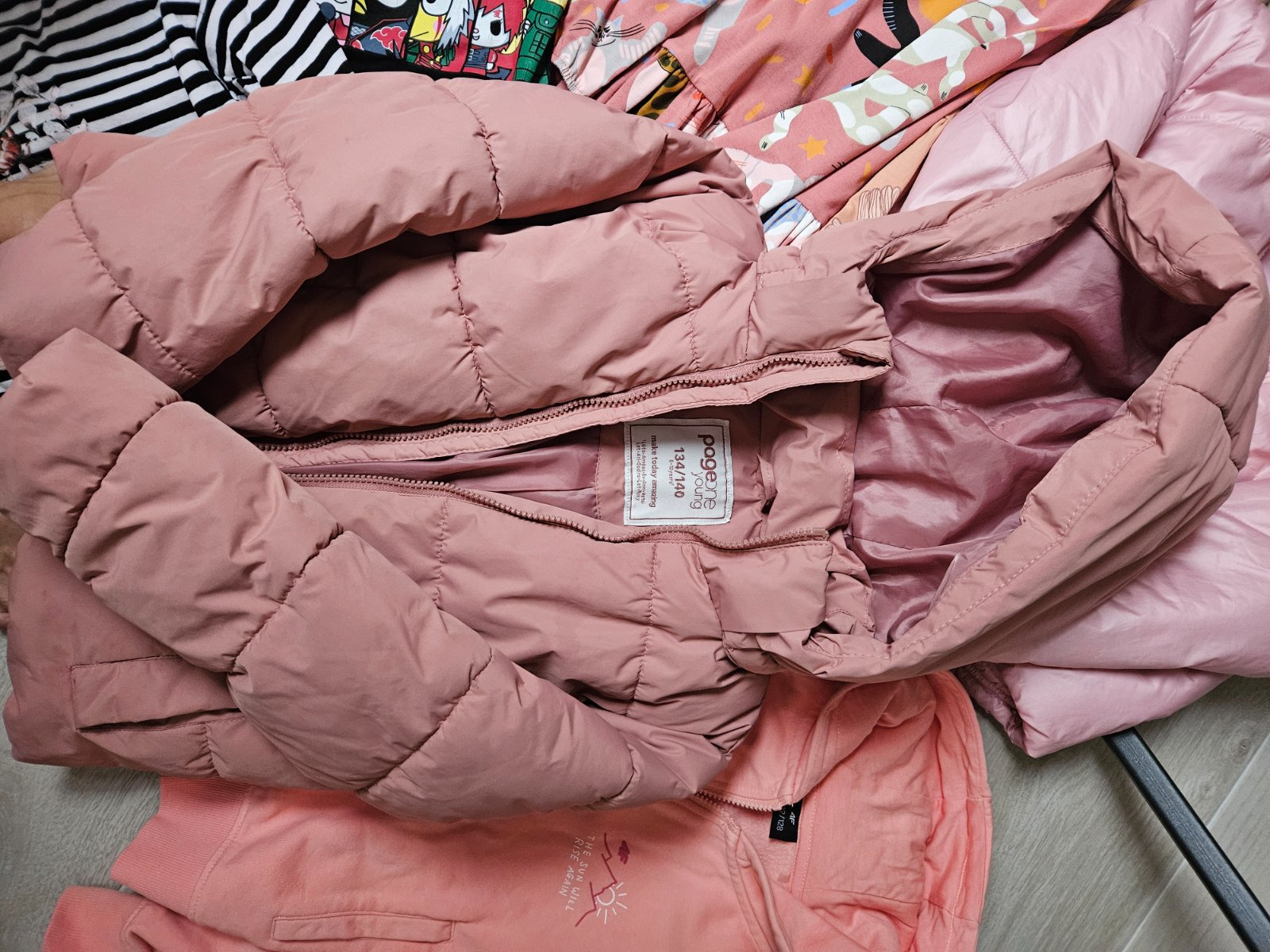 Predám dievčenskú vetrovku 134/140 kocka bledoružová-čokoládová farba. S kapucňou oddeliteľnou s kožušinkou, prešívané vnútro, vrecká na bokoch, kovový zips. Bez poškodenia.