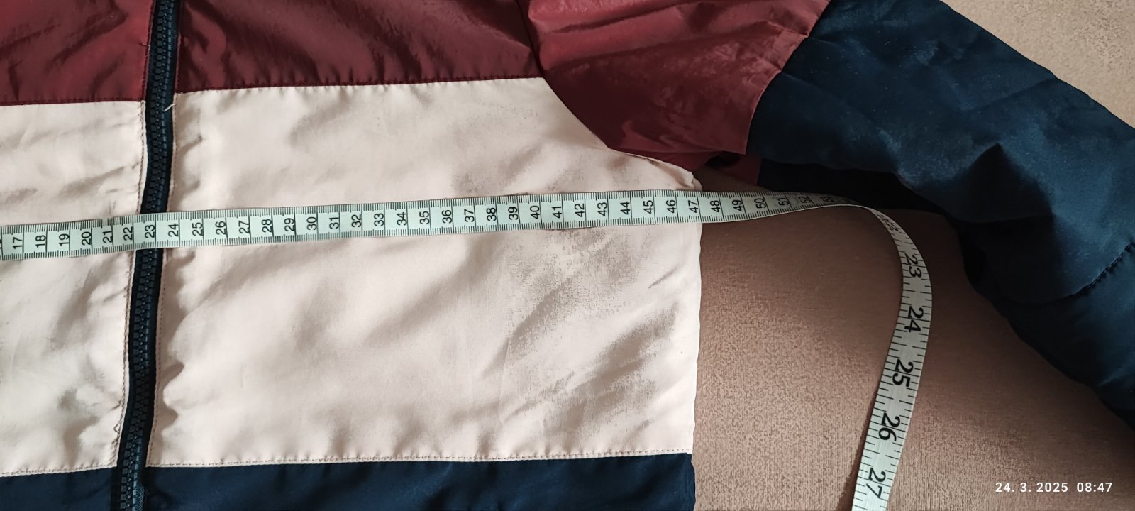 Veľmi pekná šikovná bundička vo výbornom stave málo nosená. Farba sýta bordová.