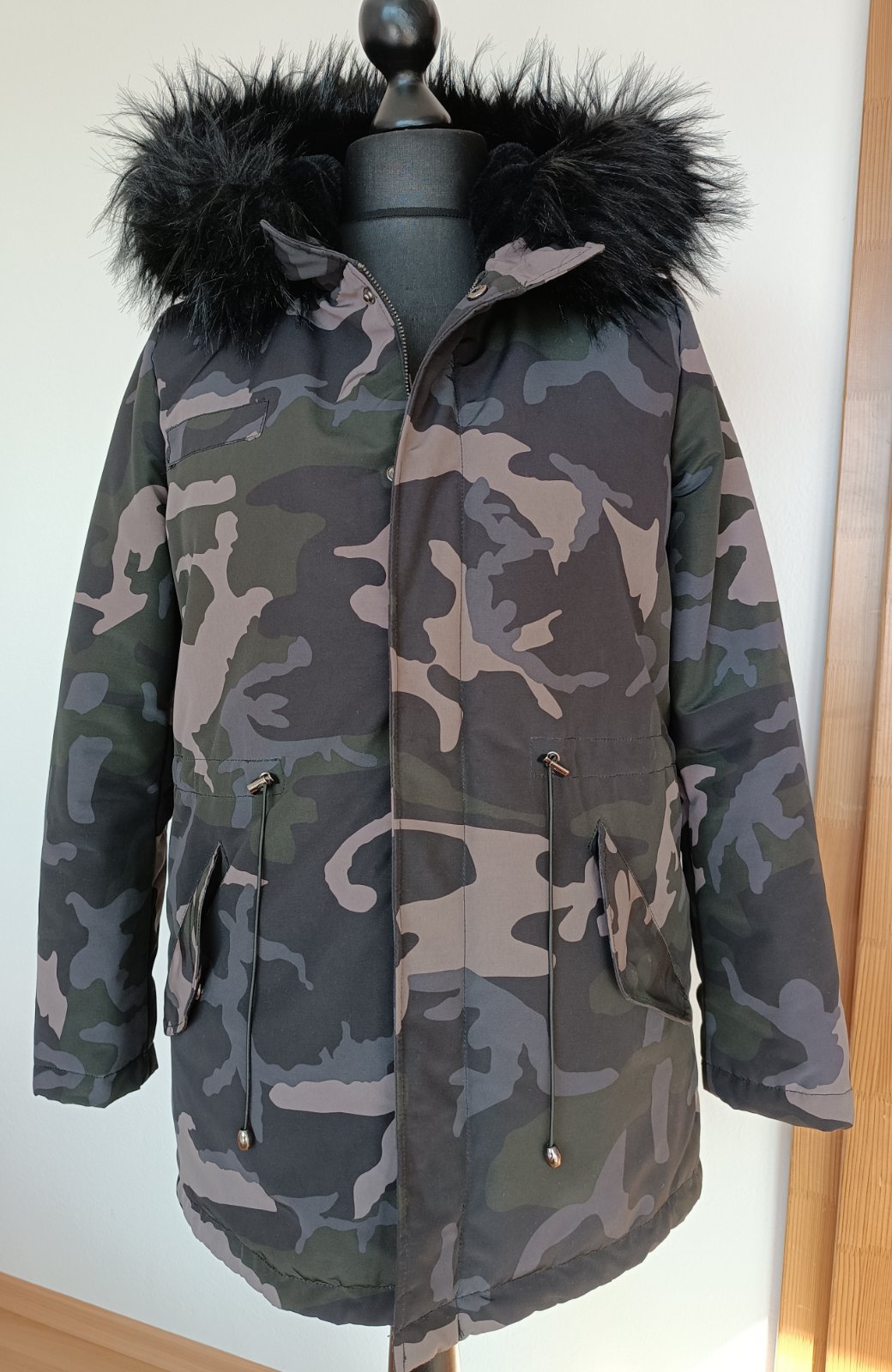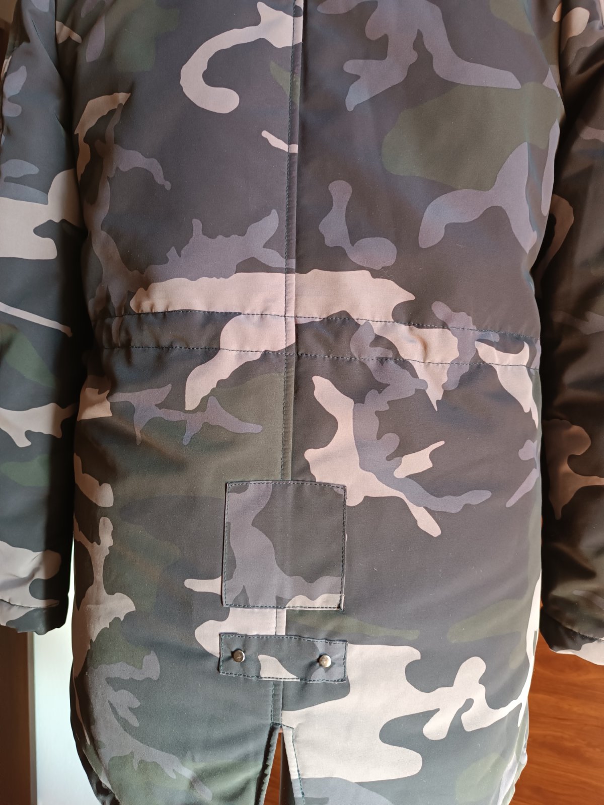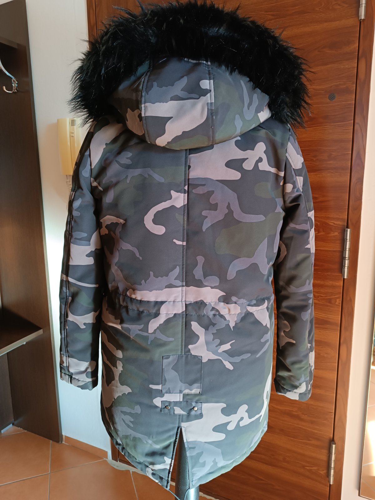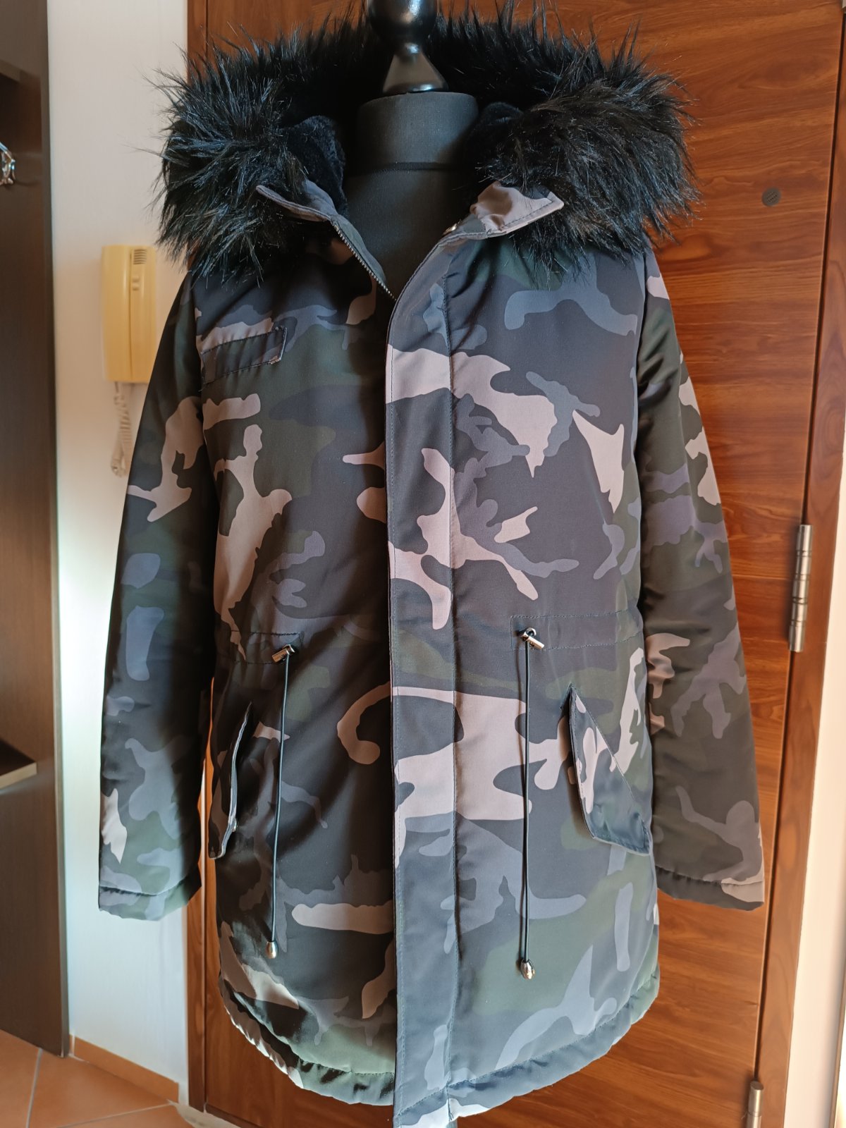 Veľmi teplá malo používaná maskáčová bunda nepremokavého materiálu . Obvod hrude 114 cm. Dĺžka bundy 78 cm vpredu a vzadu 80 cm