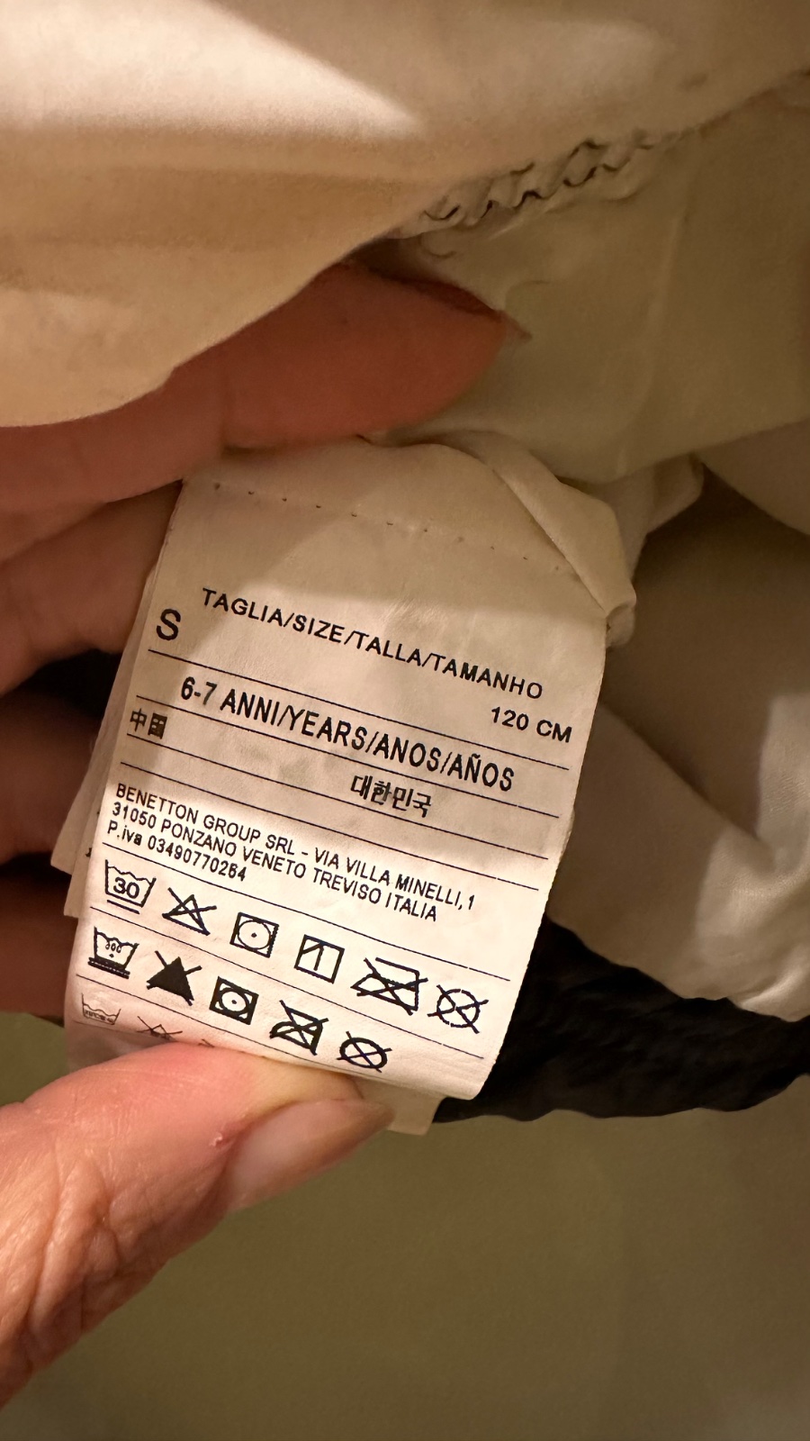 Zimna bunda benetton cierna velkost s 120 cm 6/7 tokov kupovana nova nosena jednu zimu pc 70 e