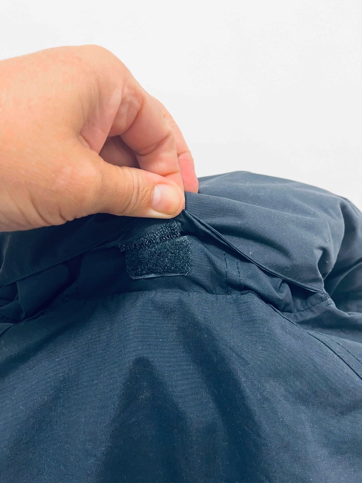 Kapucňa: Nastaviteľná so sťahovacími šnúrkami, dá sa zrolovať a schovať do goliera (alebo odopnúť – na základe fotografií sa zdá byť rolovateľná do goliera).
