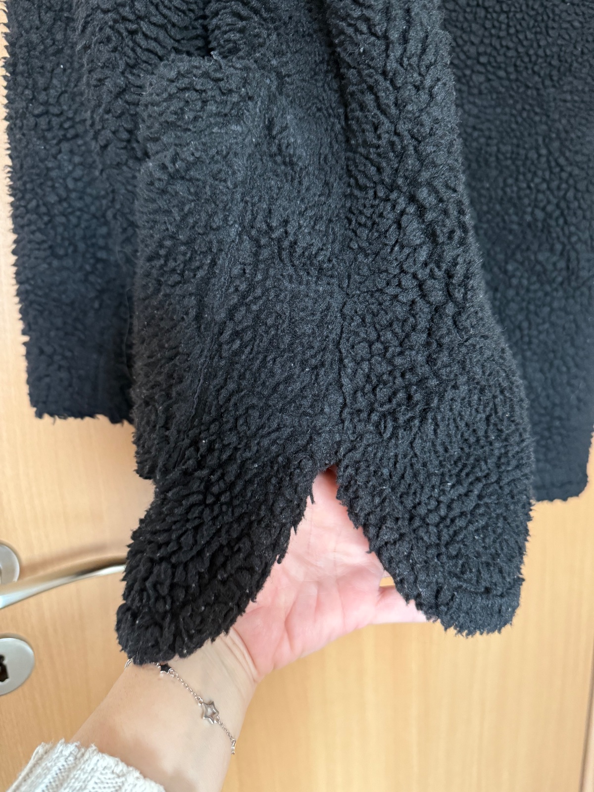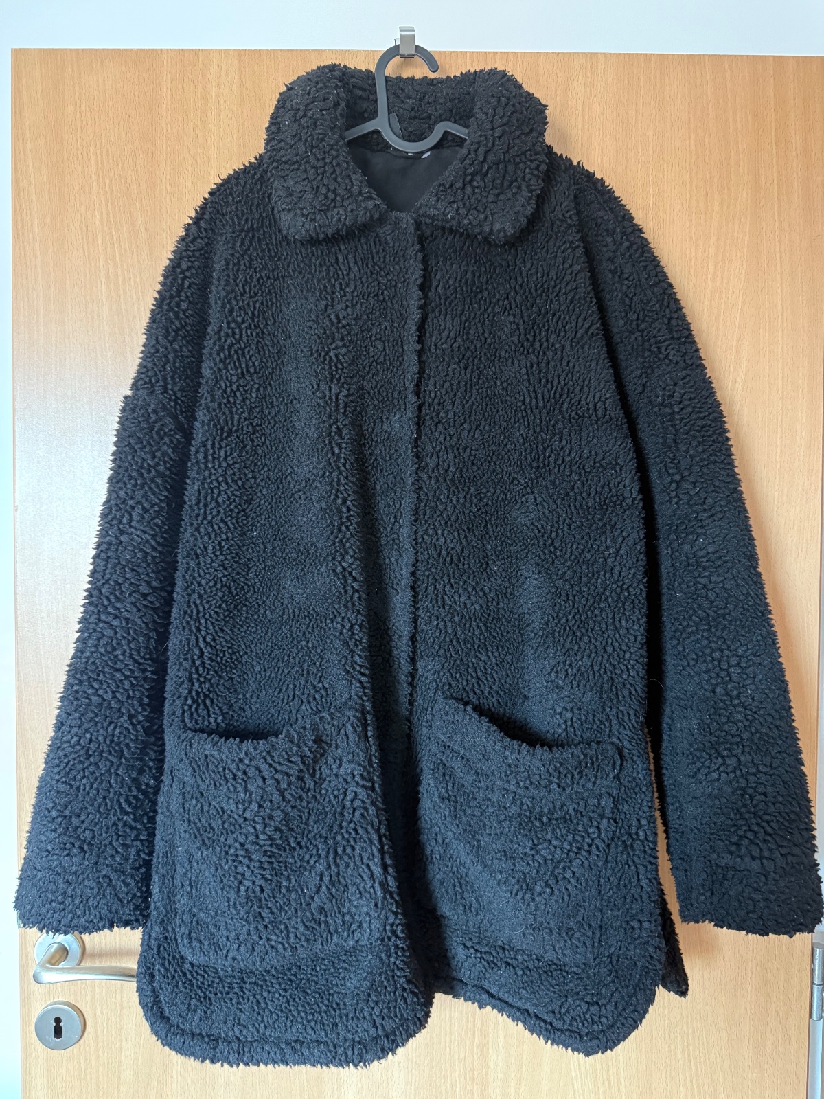 Čierny Teddy kabát, Divided od H&M, veľmi dobrý stav veľ.L na bokoch oblúkové rozparky, veľmi pekný kúsok