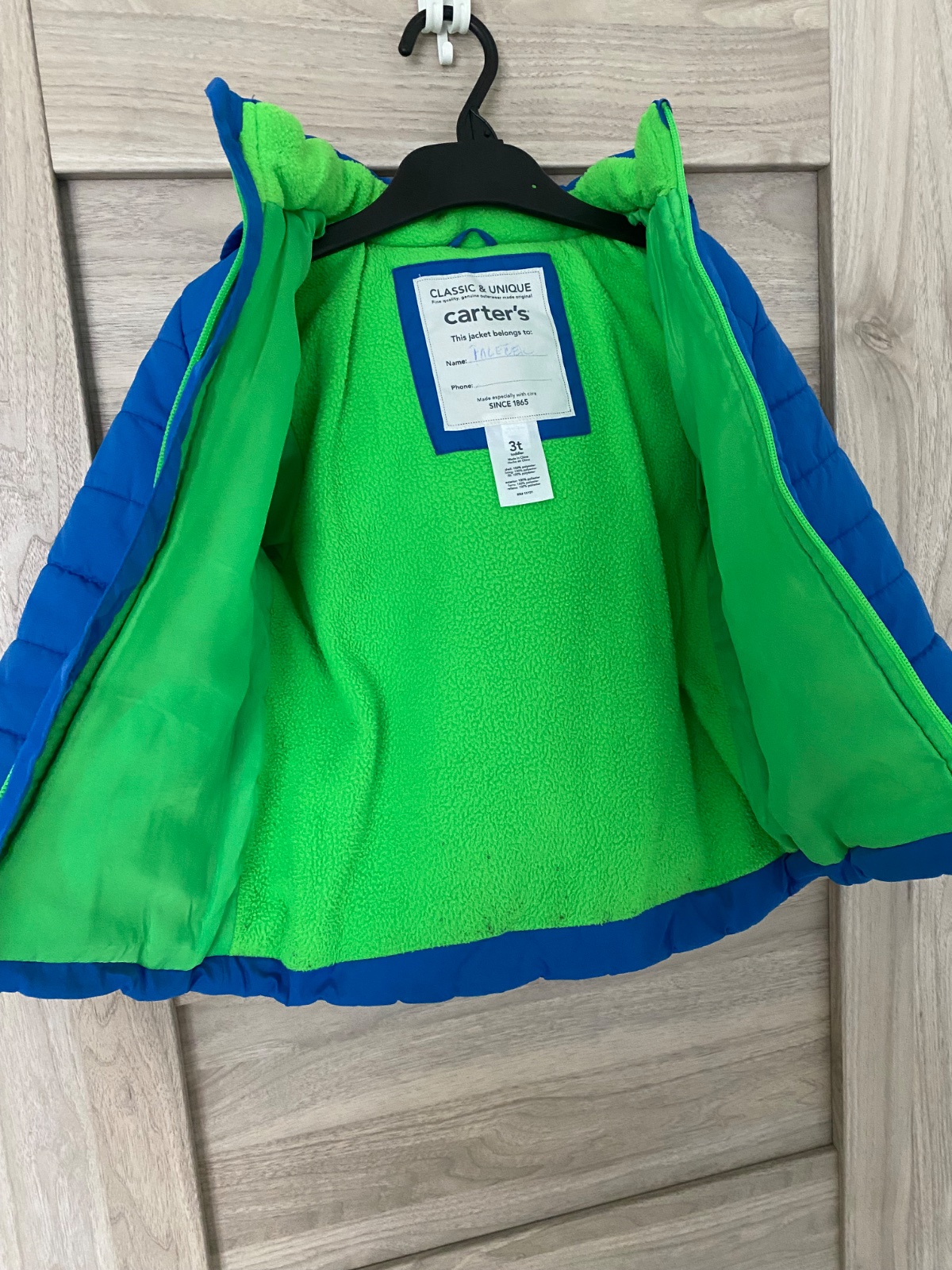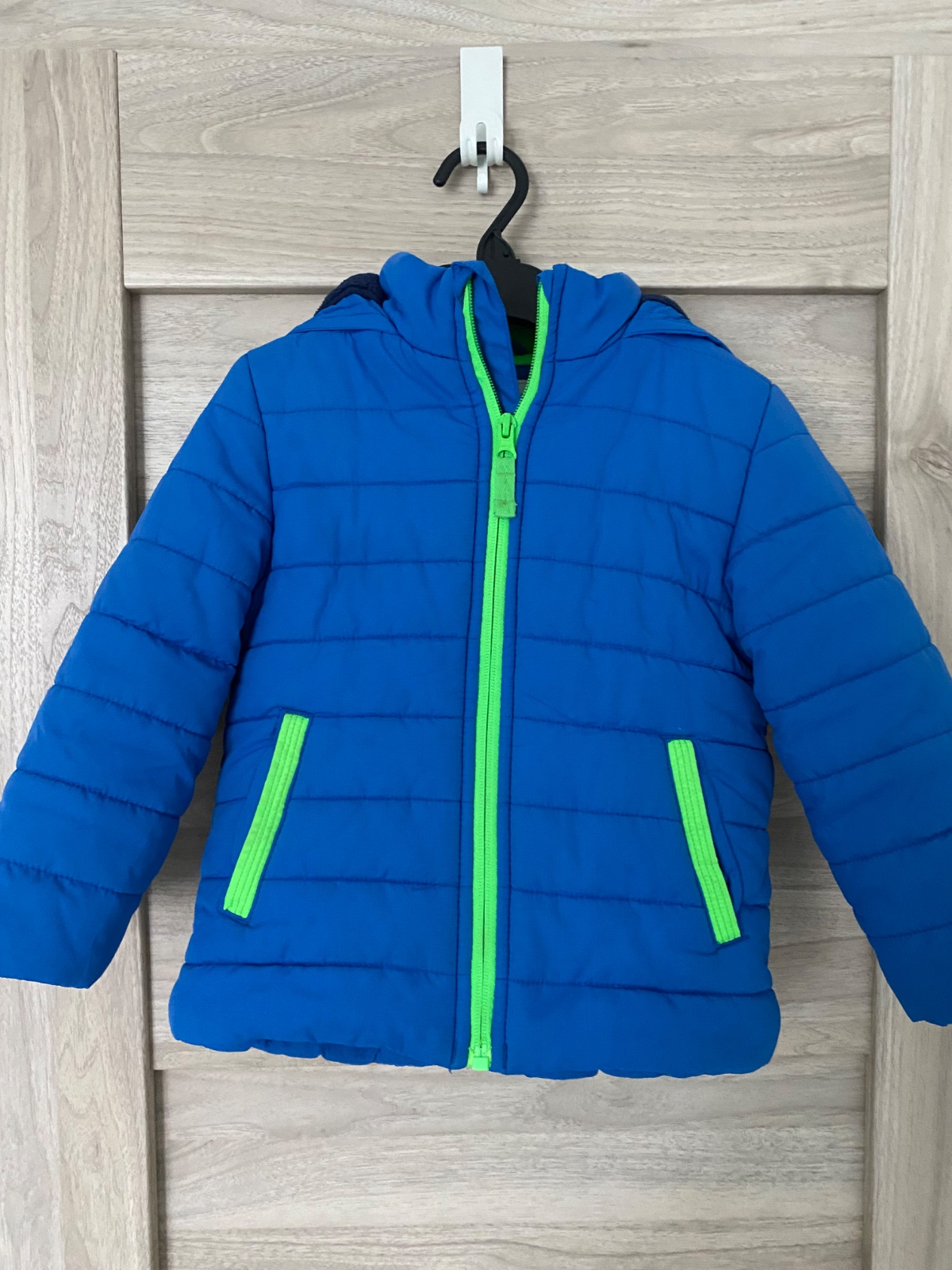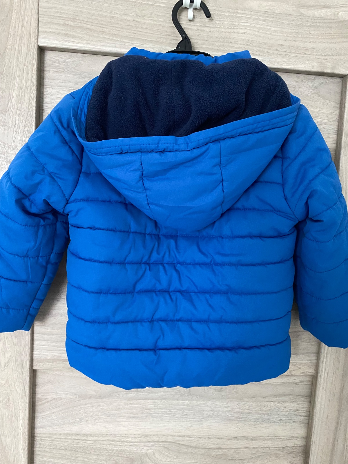 Perfektná bundička, teplá, nosený stav (Foto). Veľkosť uvedená 92/98 ale ponosíte dlhšie. Dĺžka 45cm šírka 36,5cm rukáv 36cm