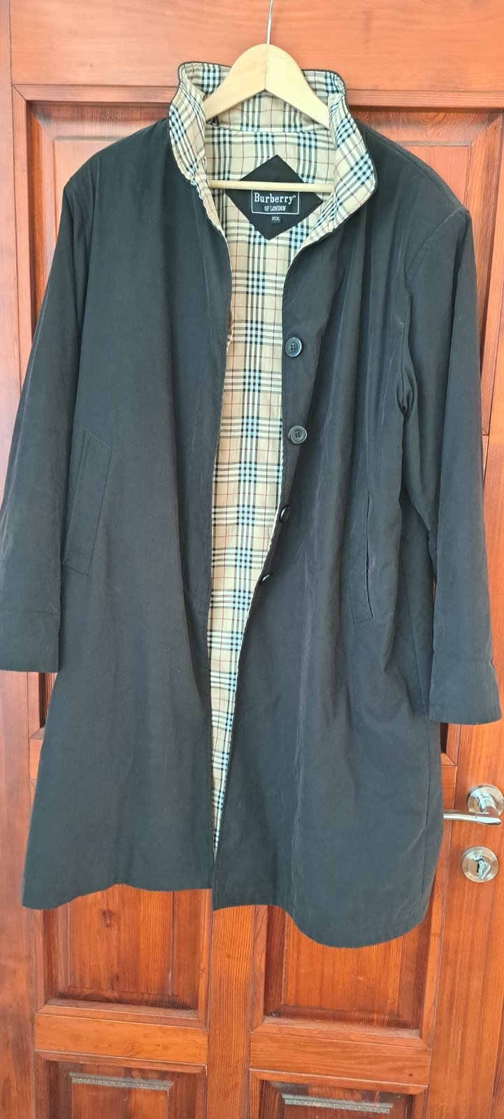Predám burberry čierny jarník, veľkosť XXXL, priemer má 61 cm, takže nie je až taký veľký, kúpený v Londýne v sekáči, neviem, či je pravý. Má pútka na boku, ale nie je k tomu opasok. Cena 15 eur + poštovné.