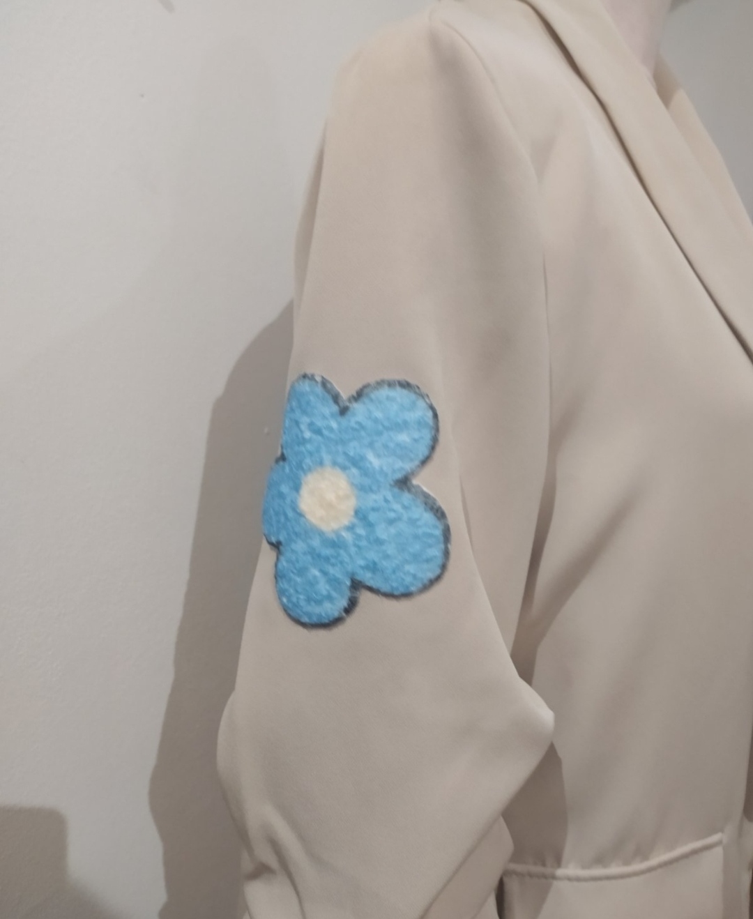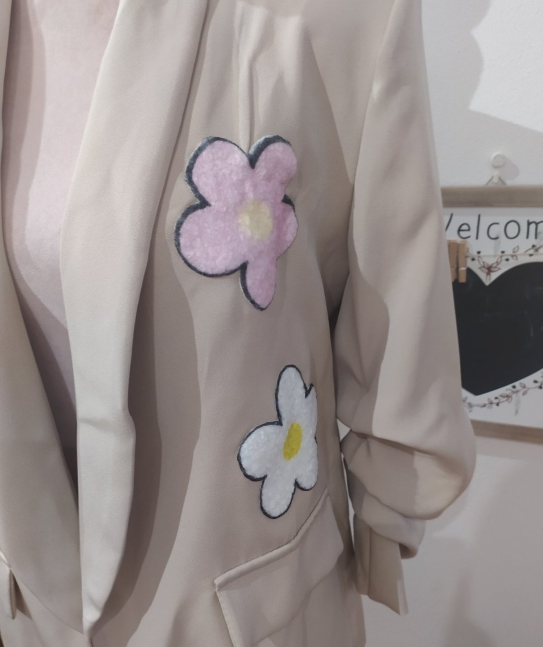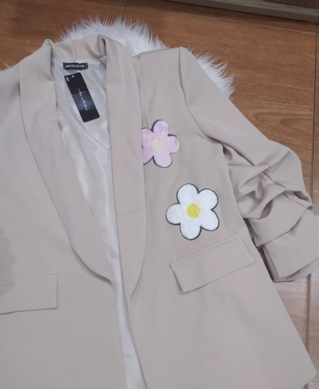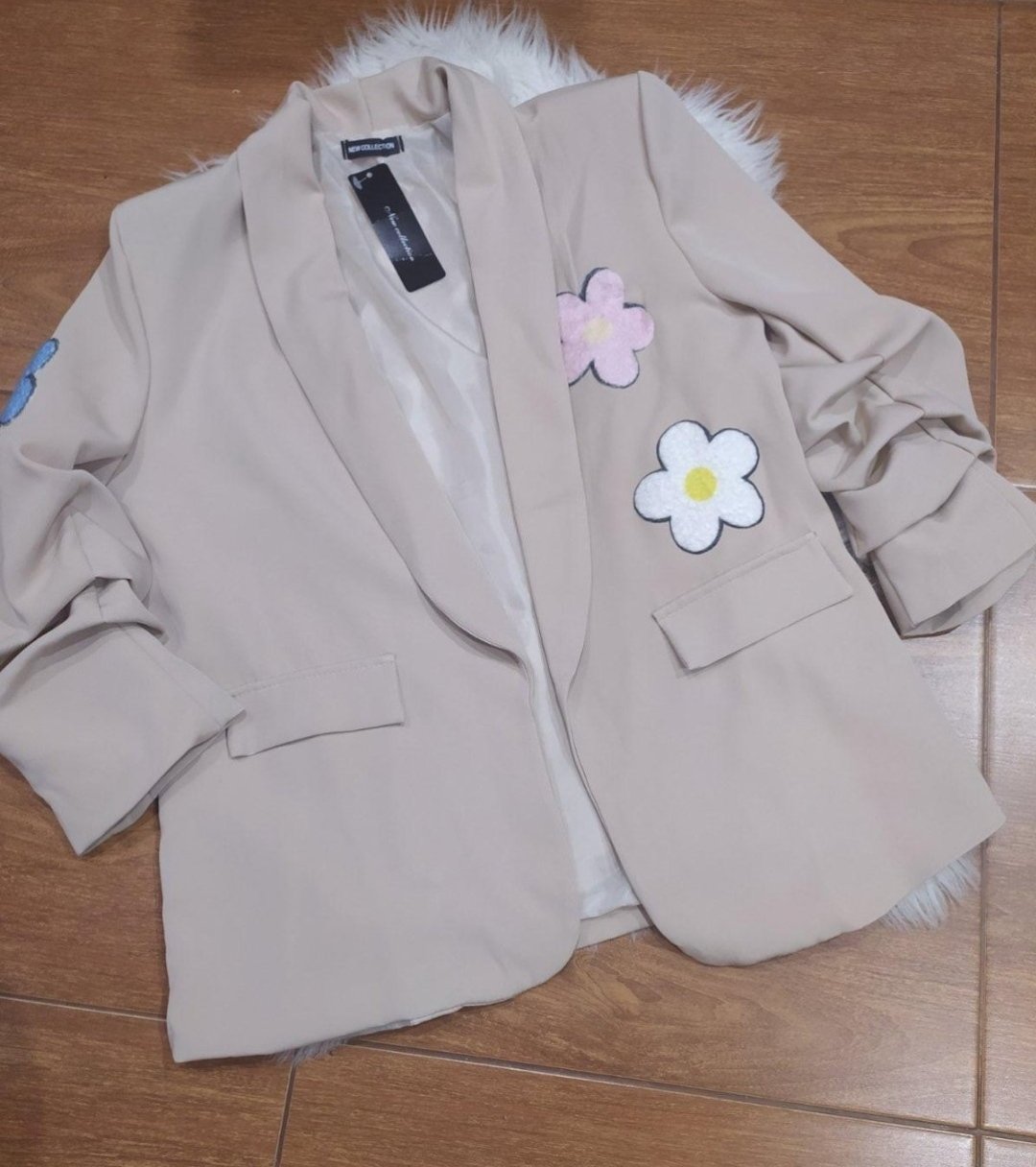 Krásne sako zdobené kvetmi,rukávy nariasene 3/4,sako je podsite ,veľ Uni vhodné pre veľ S-L