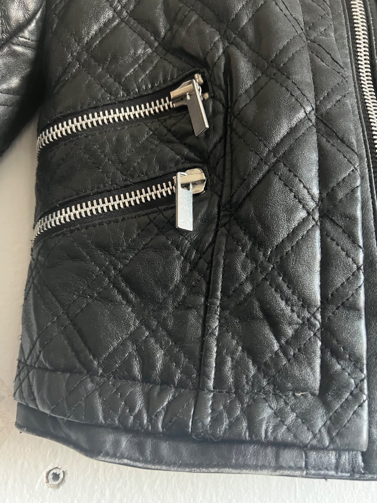 Mango trendy kozena bunda velk S prava koza presivana so zipsami pc 159€ Bezne znamky nosenia a opotrebenia