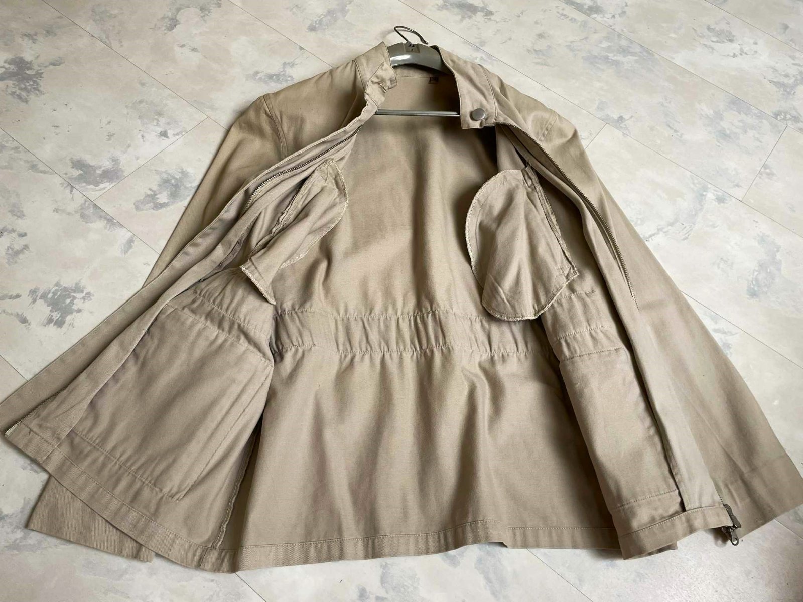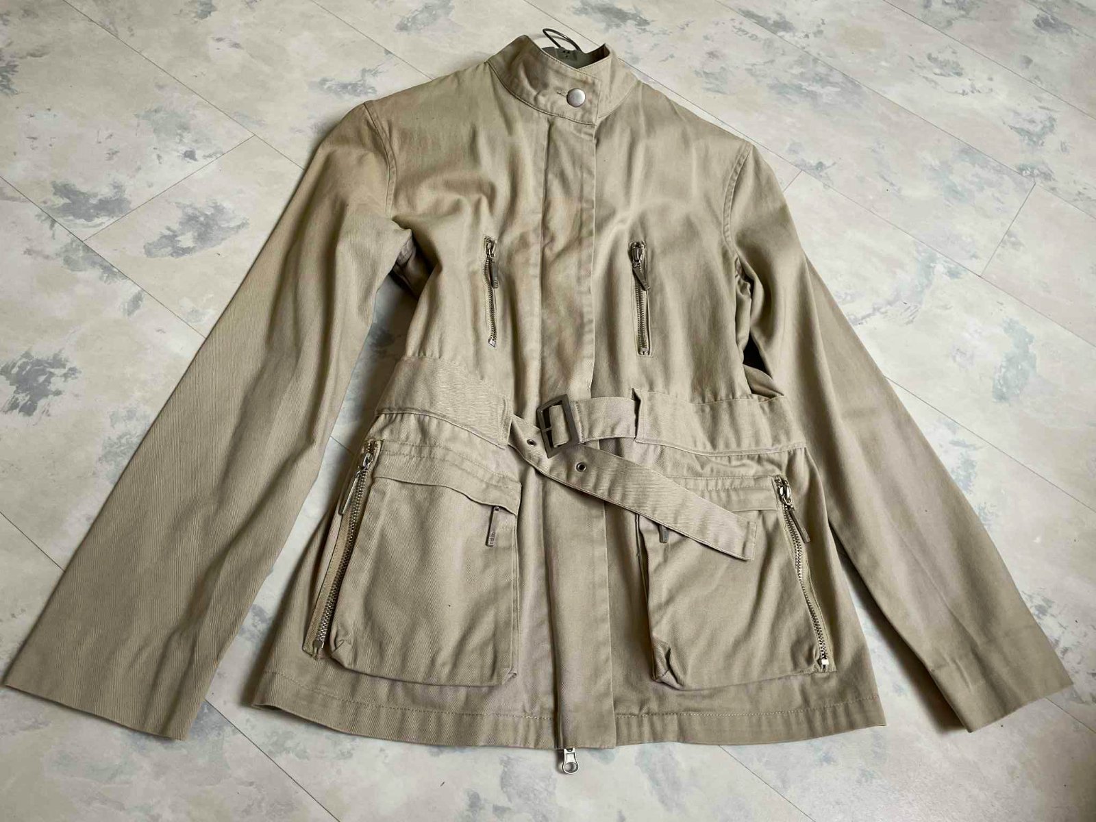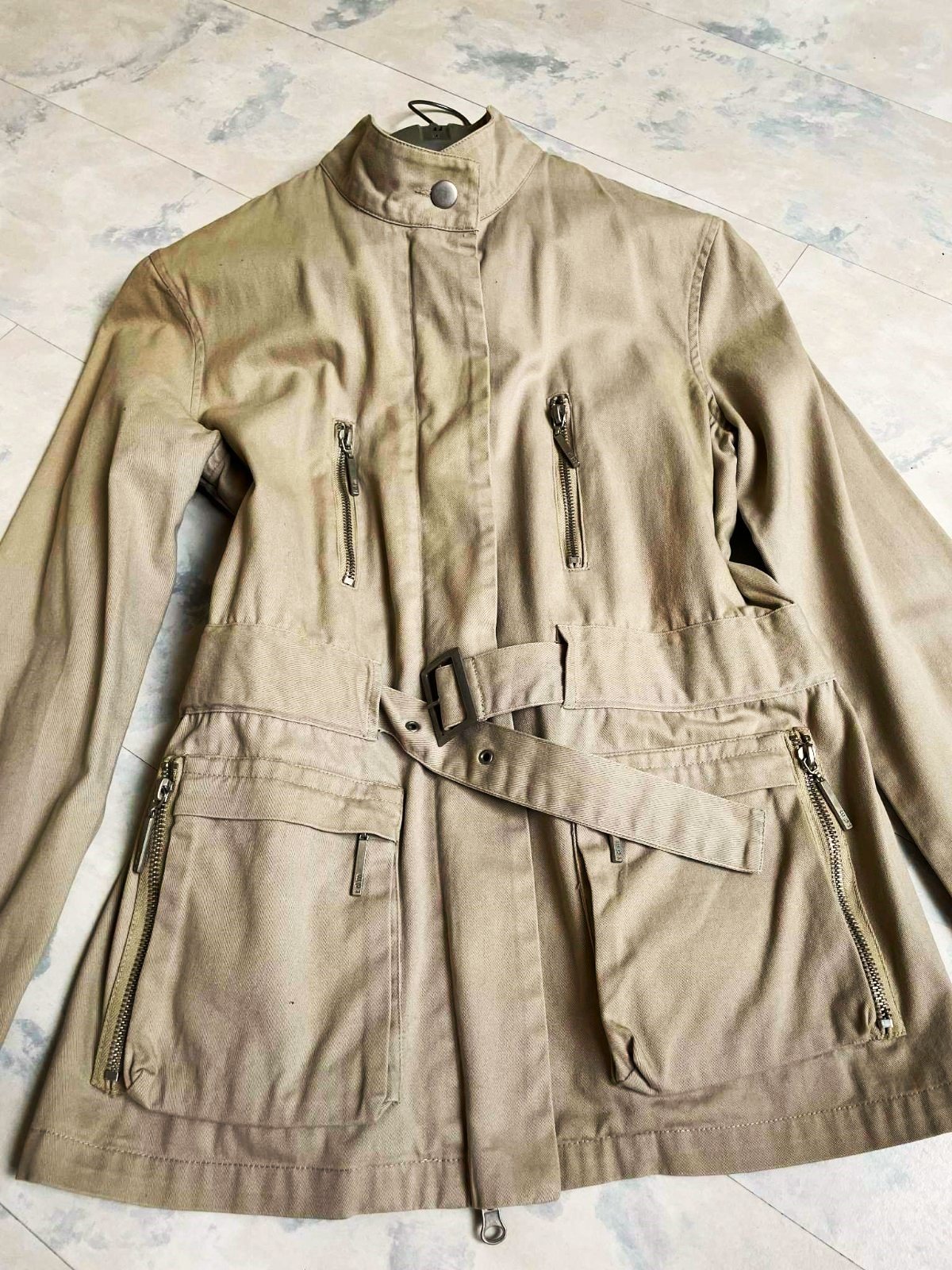 štýlová moderná dlhšia prechodná bunda s opaskom,pekne tvaruje postavu,veľmi pekné detaily strihu - vrecká,stojačik,vhodná aj na veľkosť S,bez futra,látka je hrubšia bavlna,značka tdm
