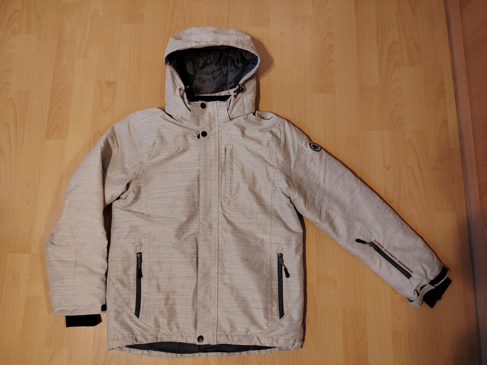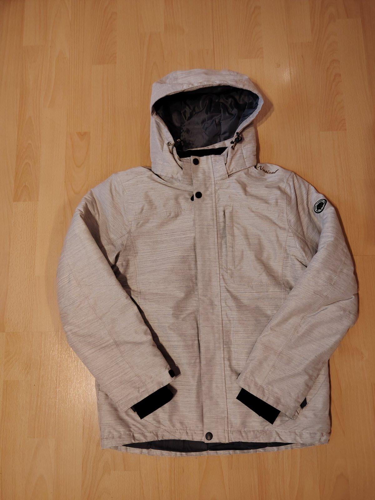 Používaná, stále vo veľmi dobrom stave, bez poškodení. Zipsy, aj suché zipsy plne funkčné, rukávy neošúchané, bez fľakov či iných poškodení. Odnímateľná kapucňa, snežný pás, vrecko na skipas. Celková dĺžka 67cm, šírka 51cm, rukáv od kapucne 69cm.