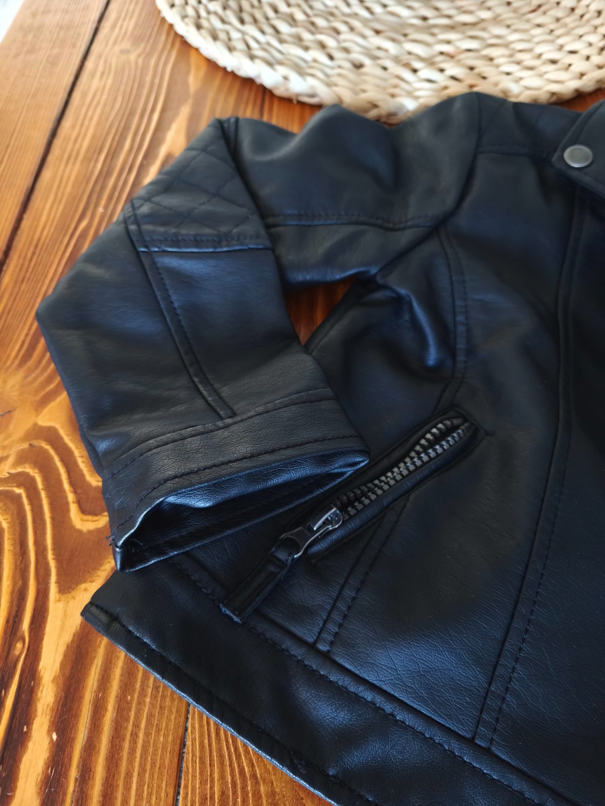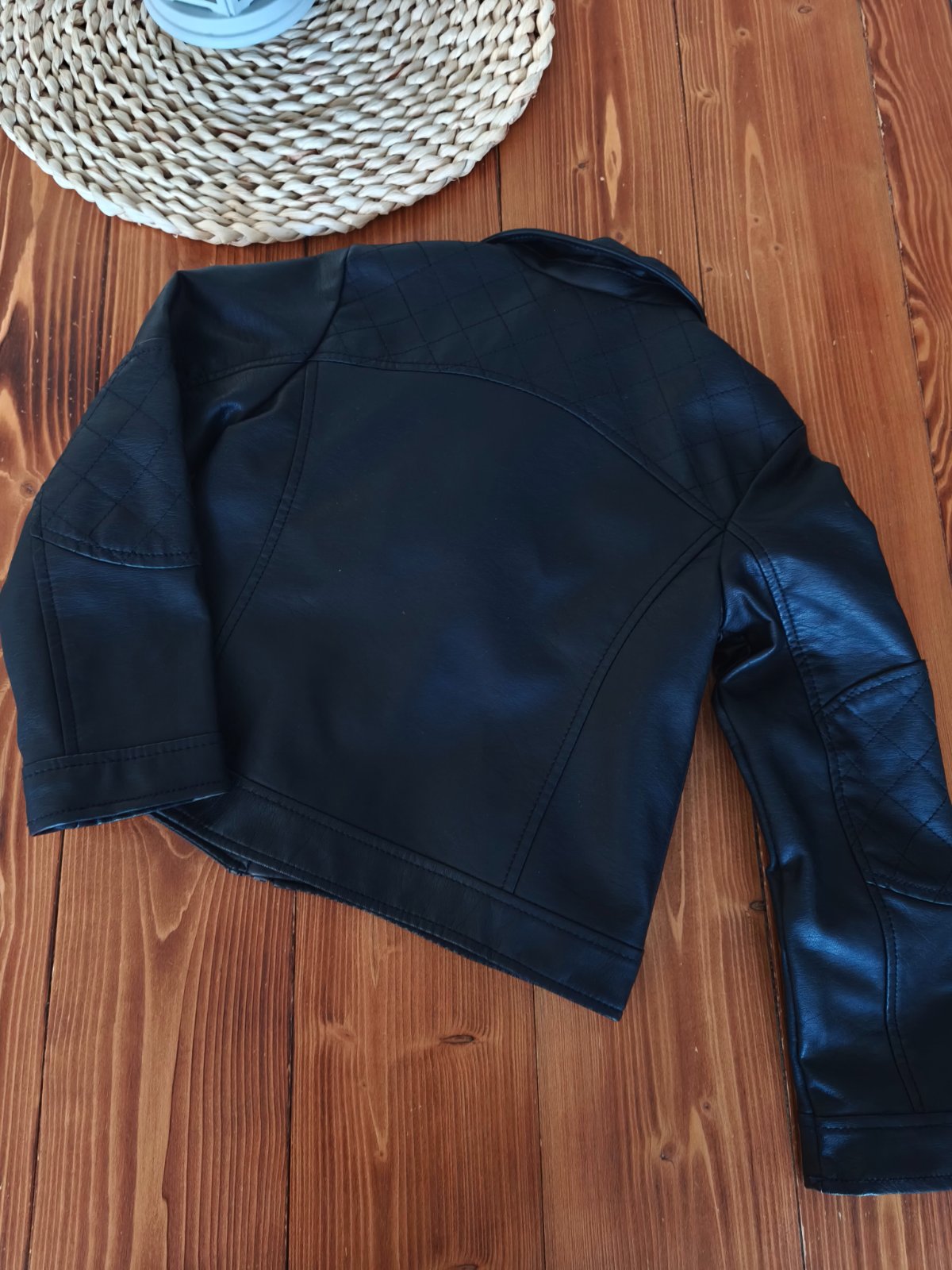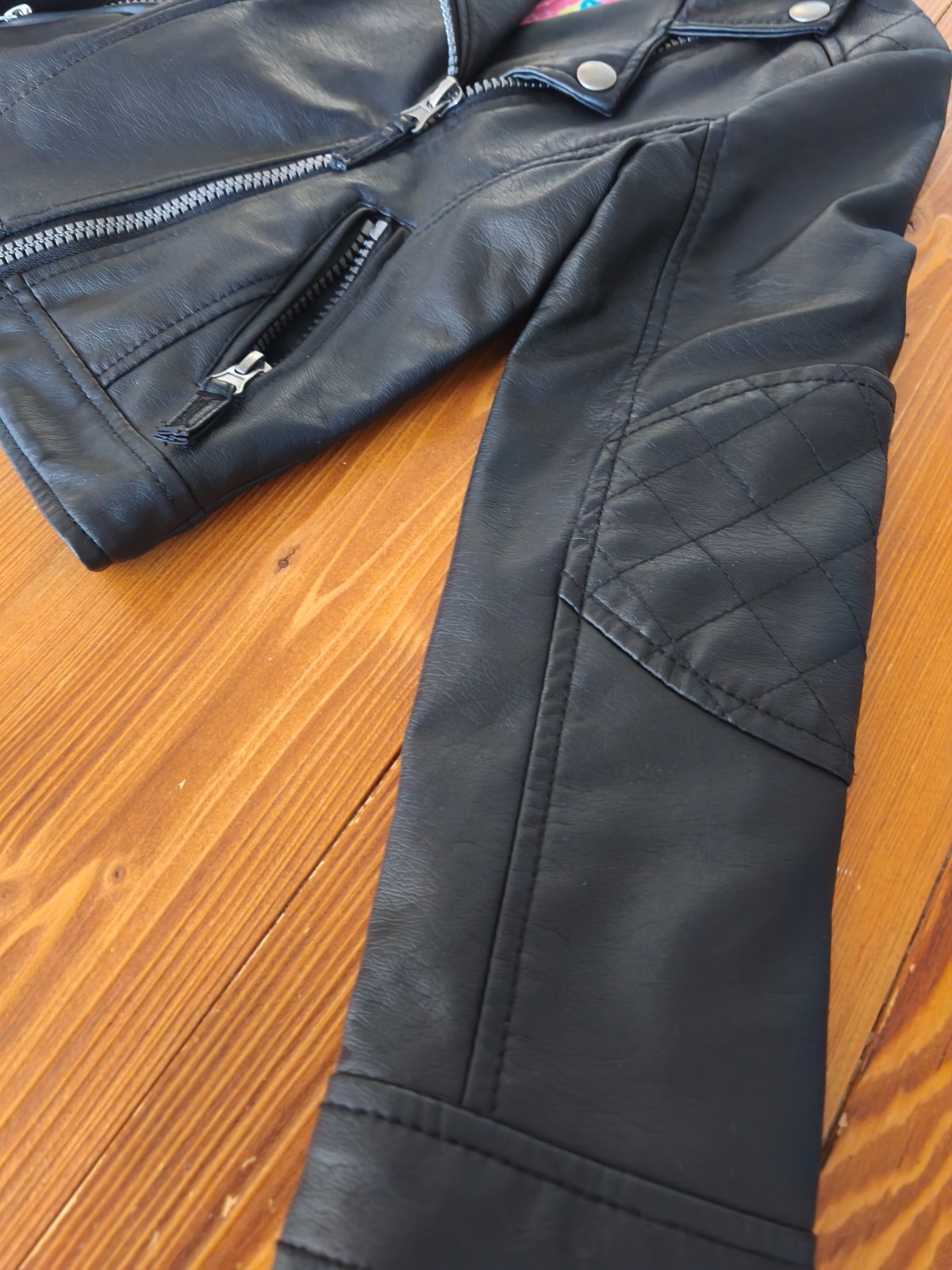 Motorkarsky štýl. Bez poškodení, nikde nepuka/neolupuje sa. Dĺžka 39 CM Šírka 34 CM Rukáv od ramena 42 CM. V ponuke mám aj čižmy veľkosť 32(pridávam k nim darček ružové pančuchy veľkosť 7-8 rokov 1...