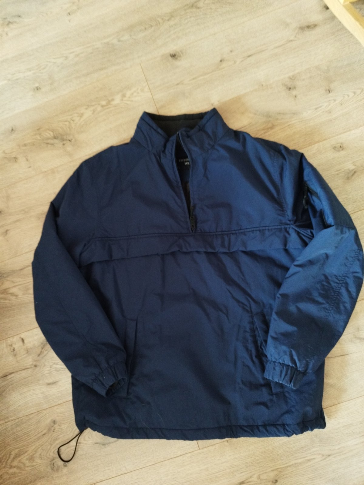 Raz oblecena panska casual bunda Adidas, prechodna, nezateplena. Vrch je mierne pogumovany, mala by zvladnut aj mierny dazd. Top stav bez poskodeni. Farba je tmavomodro-siva.