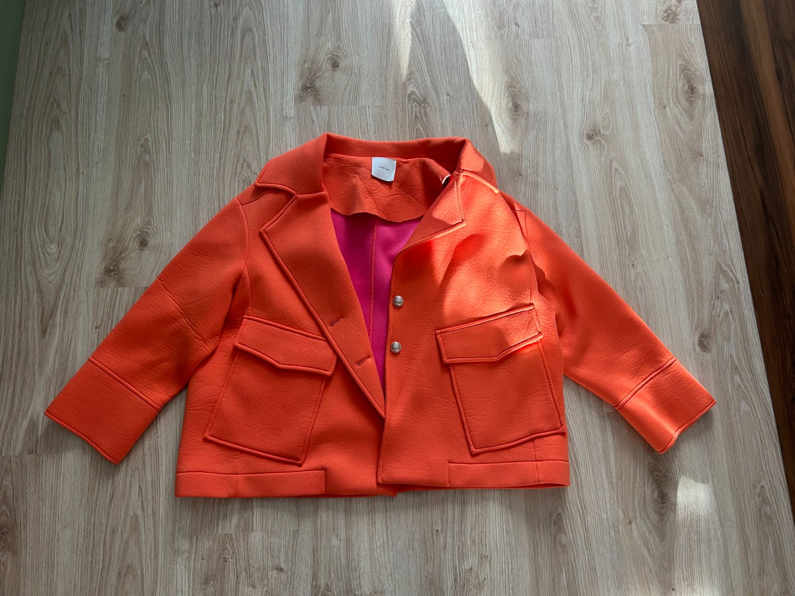 Predám tento štýlový kabát značky GREENAPPLE v univerzálnej veľkosti, je oversized strihu, takže sedí ozaj na všetky veľkosti. Kabát bol len 1x na chvíľu oblečený. Pôvodne stál 60 EUR. Zapína sa na gombíky, má dve predné vrecká. Veľmi pekná farba, ktorá rozjasní bežné jesenné, či jarné dni.