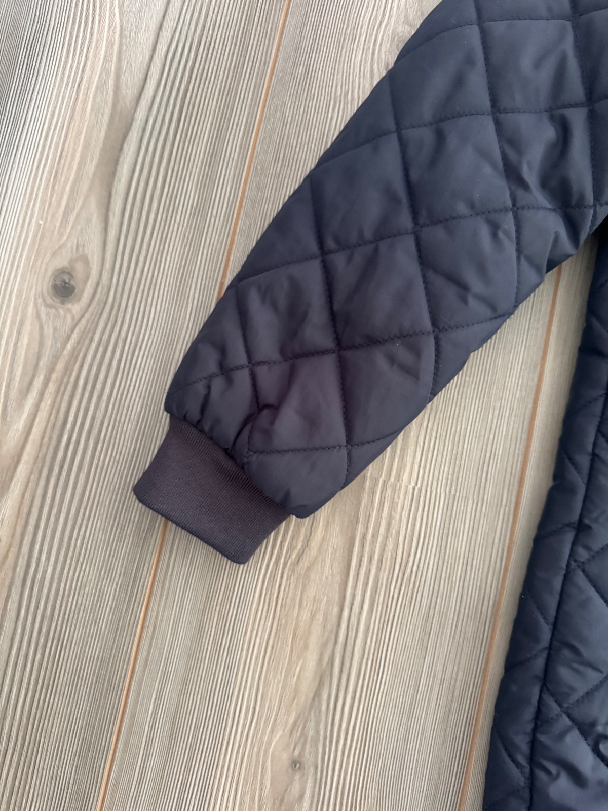 Predĺžena bundicka /kabátik. Podsita a vattovana. Skôr pre štíhle dievčatko. Super stav bez akýchkoľvek poškodení. Farba krásna tmavomodrá bez vyblednutia.