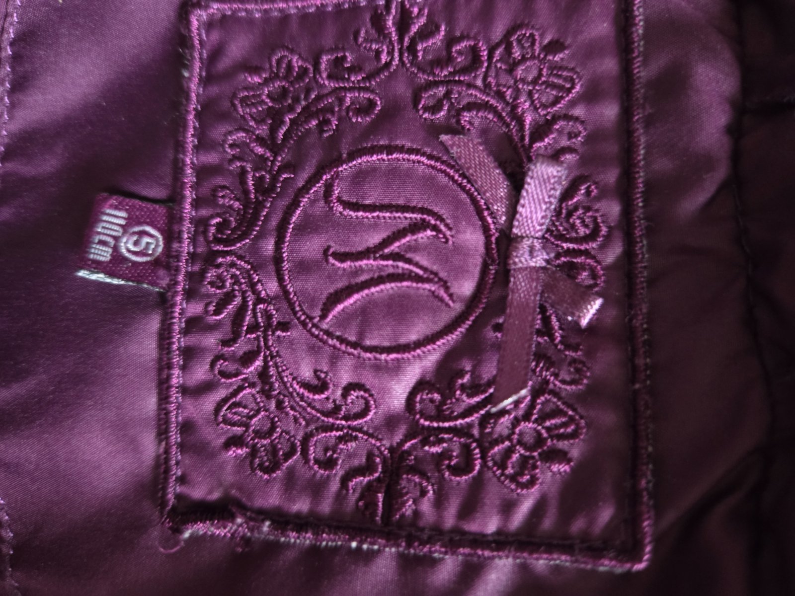Pekný nosený stav, predĺžený strih, cd 53 cm, šírka pod pazuchami 36 cm, rukáv od krku 50 cm, kapucňa sa dá odpojiť. Na srdiečku na zipse chýbajú 2 kamienky, opasok neviem nájsť - zohľadnené v cene.