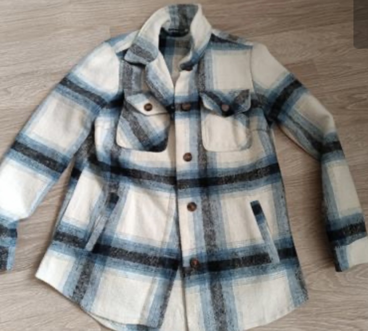 Krásny,ozaj krásna farba kombinácia...vrchná košeľa,alebo košeľový kabát...vhodná aj ako kabátik na prechod.obdobie jar a jeseň..nie je nijako zateplený.,ale je hrubšia..Top stav,teplá..sedí na veľ.36/38..značka Janina.
