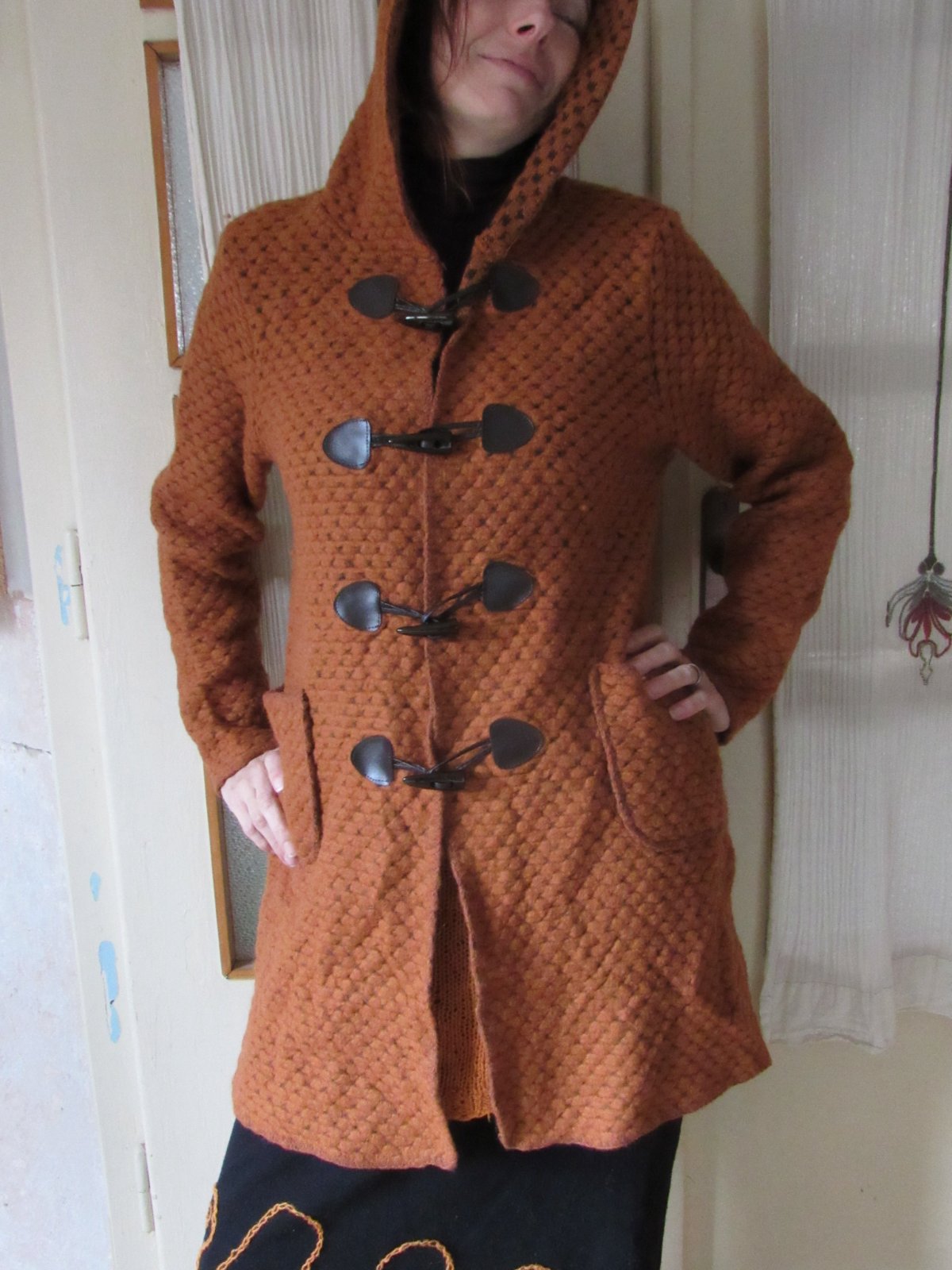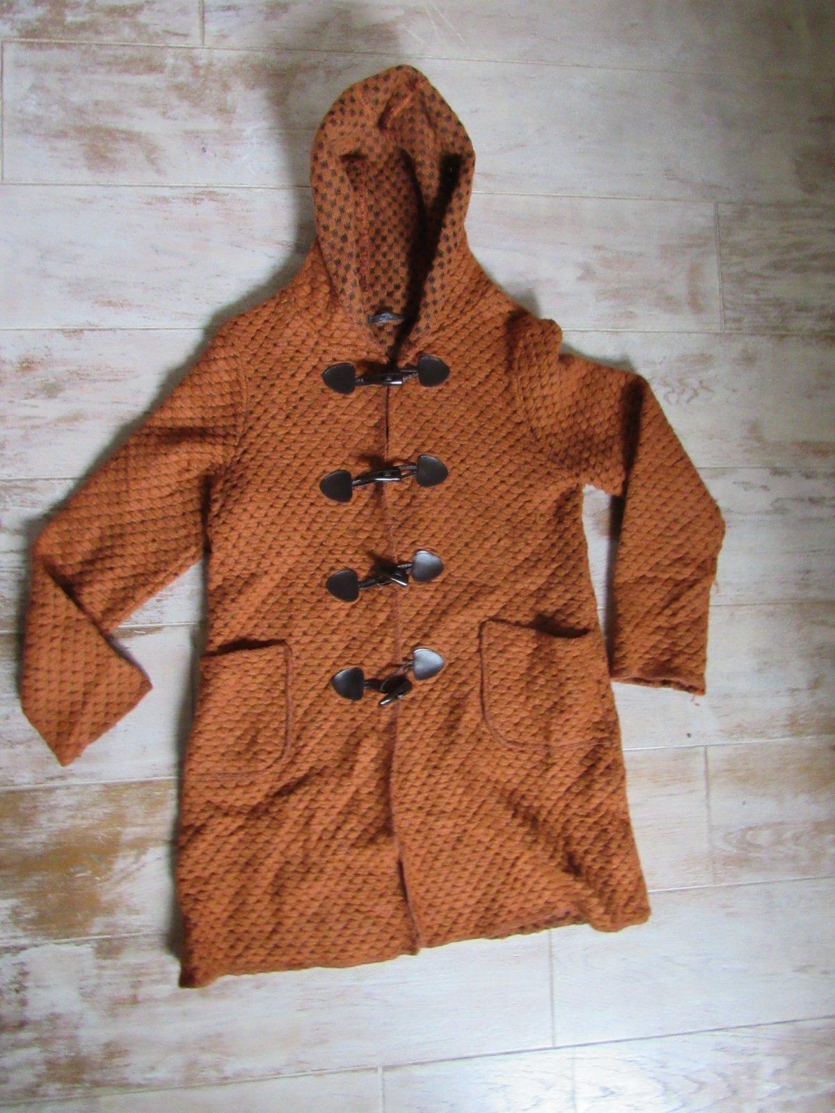 Vlnený škoricový kabátik s kapucňou
