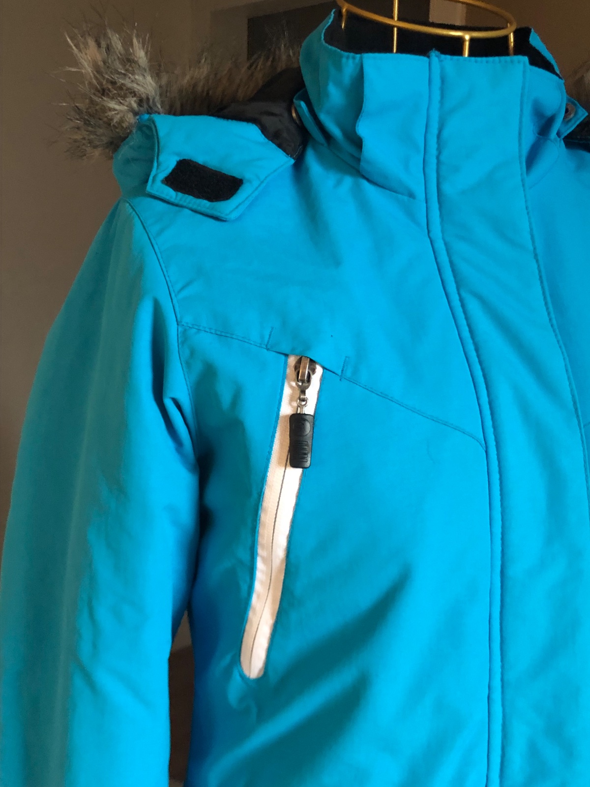 Kvalitná zimná bunda, zapínanie na zips, odoberatelna kapucňu s kožušinou, super stav, vzadu jemne ošúchaný napis… ináč skvelá.
