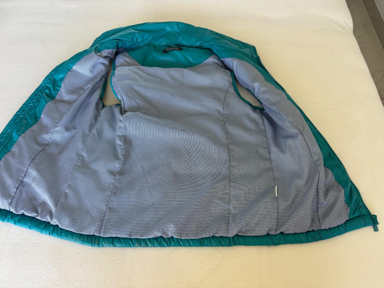 Veľmi teplúčku vestu pre dievčatá veľkosť S ,dlhá je bez kapucne v zadu má 62 cm v predu má 58 cm a cez prsia má 48 X2 ,bez poškodenia