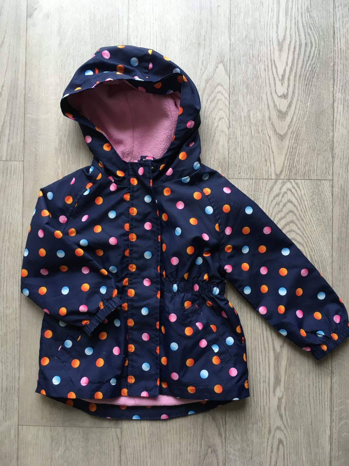 Vatovaná (hrubá) prechodná bunda pre dievčatko, veľkosť 80. Nosená, ale bez poškodení, dier/žmolkov/fľakov. Farba staroružová, potlač zlaté srdiečka. Cena 3 € + pošta. Pozri aj ďalšie moje inzeráty...