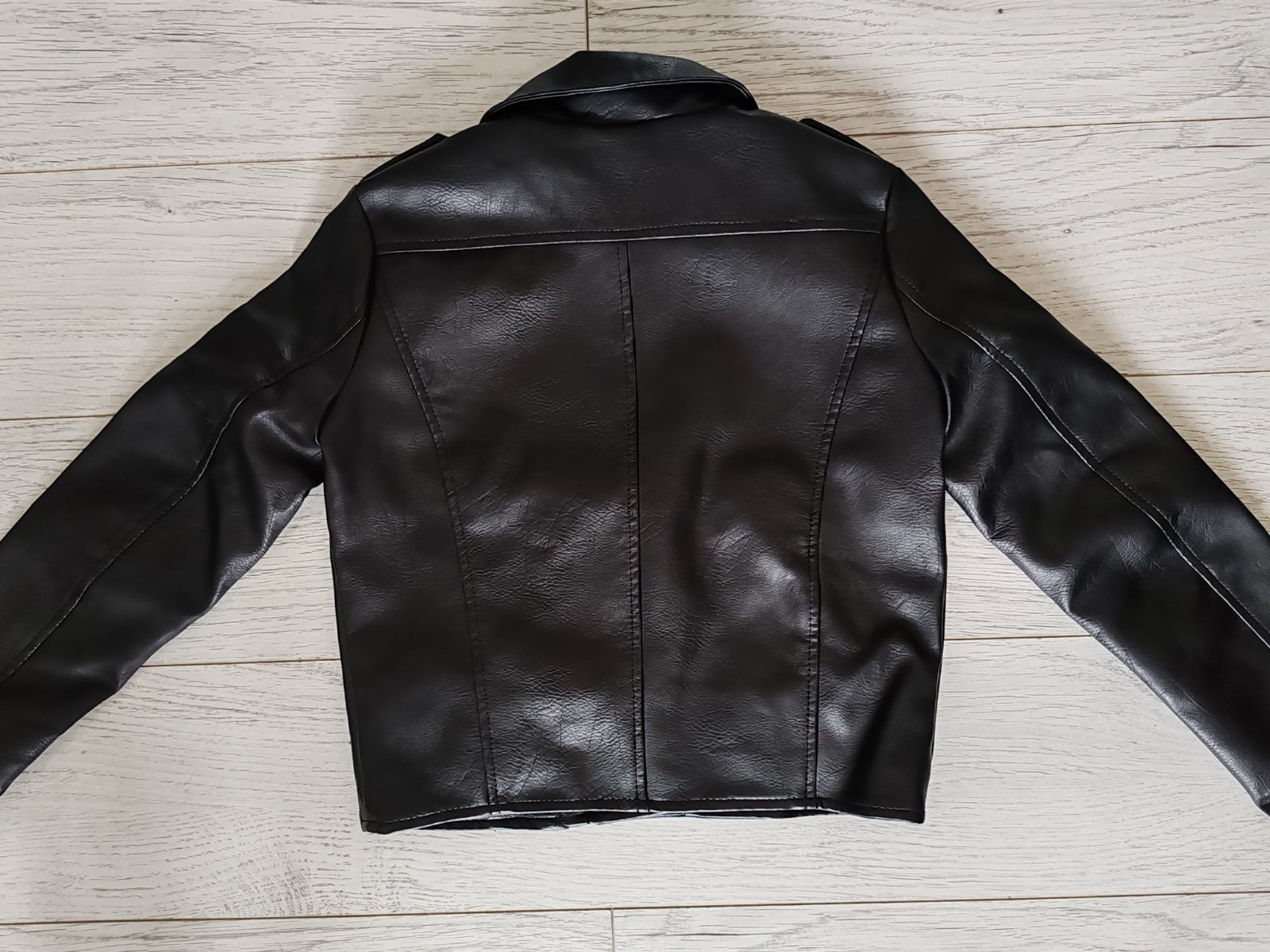 Predám koženkovú bundu veľkosti 140. Dĺžka od ramien je 43cm, šírka pod pazuchami je 40cm, šírka v najužšej časti vna spodku je 35,5cm, dĺžka rukáva je 49,5cm. Nepoškodená.