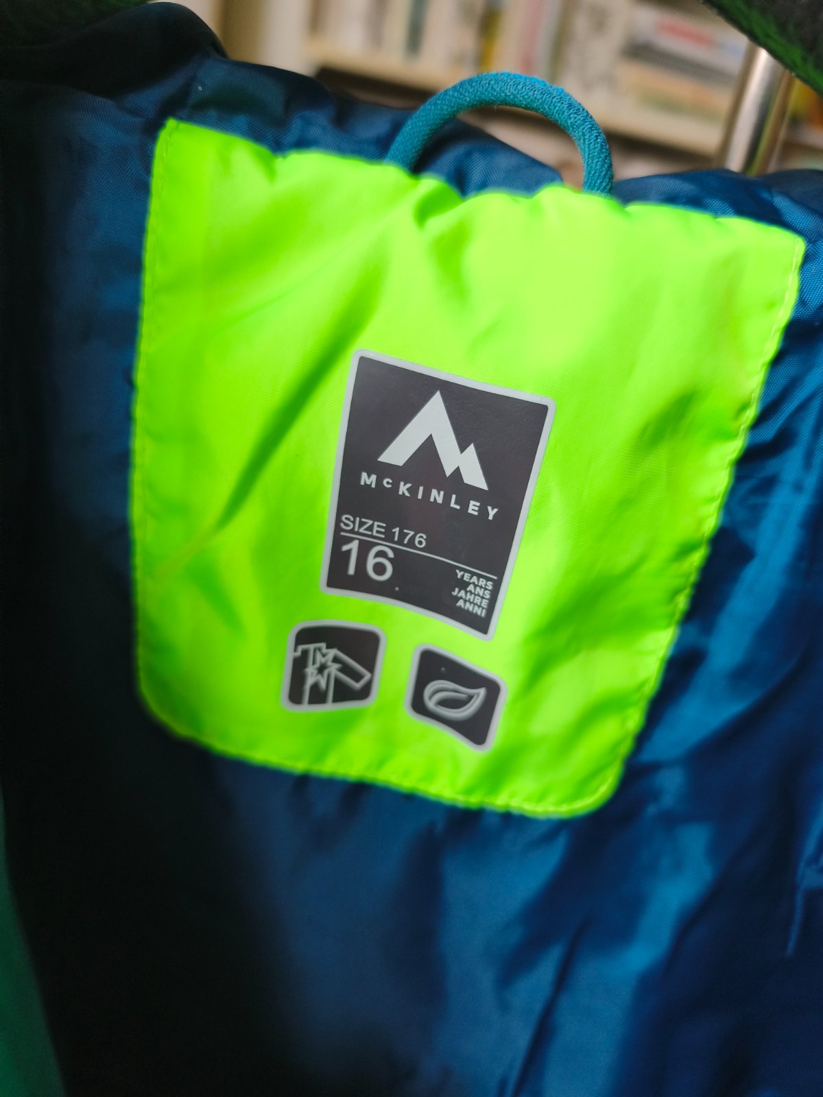 Chlapčenská bunda, nosená, zapínanie na zips, pevná kapucňa, reflexné prvky, bunda ssa skladá z bundy a mikiny, ktorá sa dá odopnúť, veľ. 176. Dĺžka: 69 cm Šírka: 55 cm Dĺžka rukáva od krku: 77,5 c...