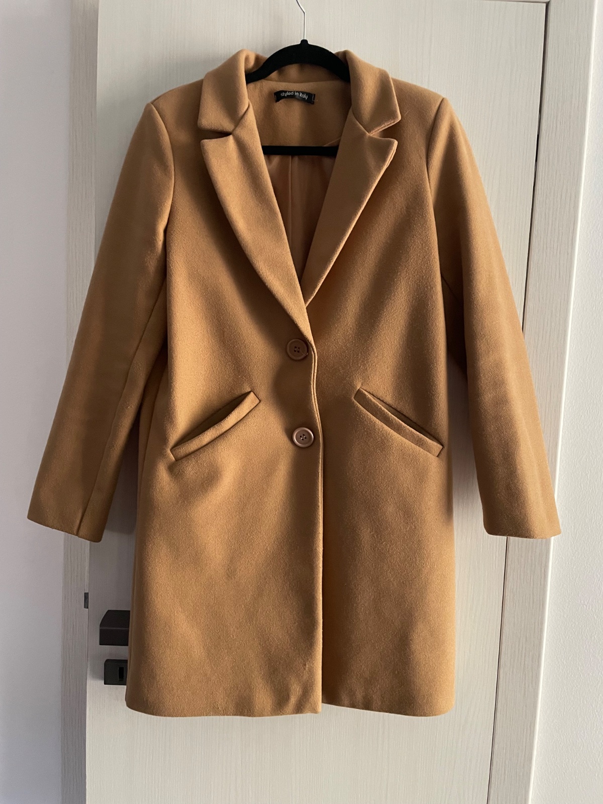 Jarný kvalitný plášť nenosený. Príjemný materiál s krásnymi detailami. Podšity. S dvojradovym zapínaním a s opaskom. Vzadu rozparok. Dĺžka rukáva od ramena 61cm. Plecia 14cm Podpazušie 63cm 2x Dĺž...