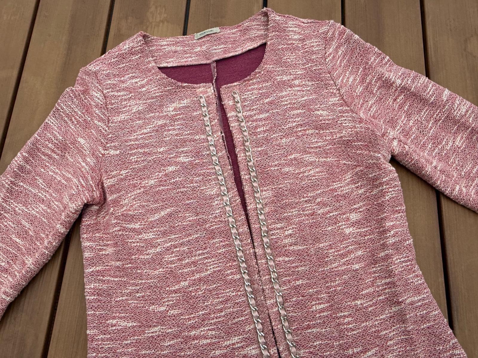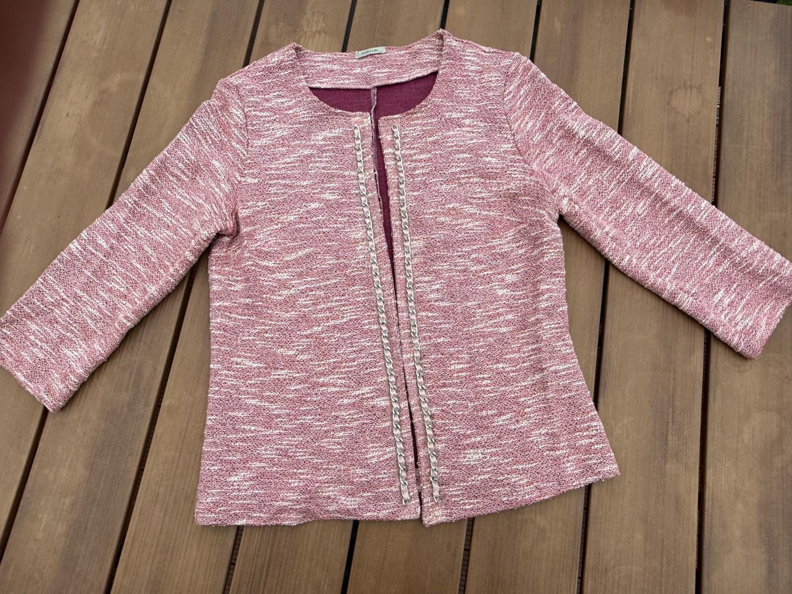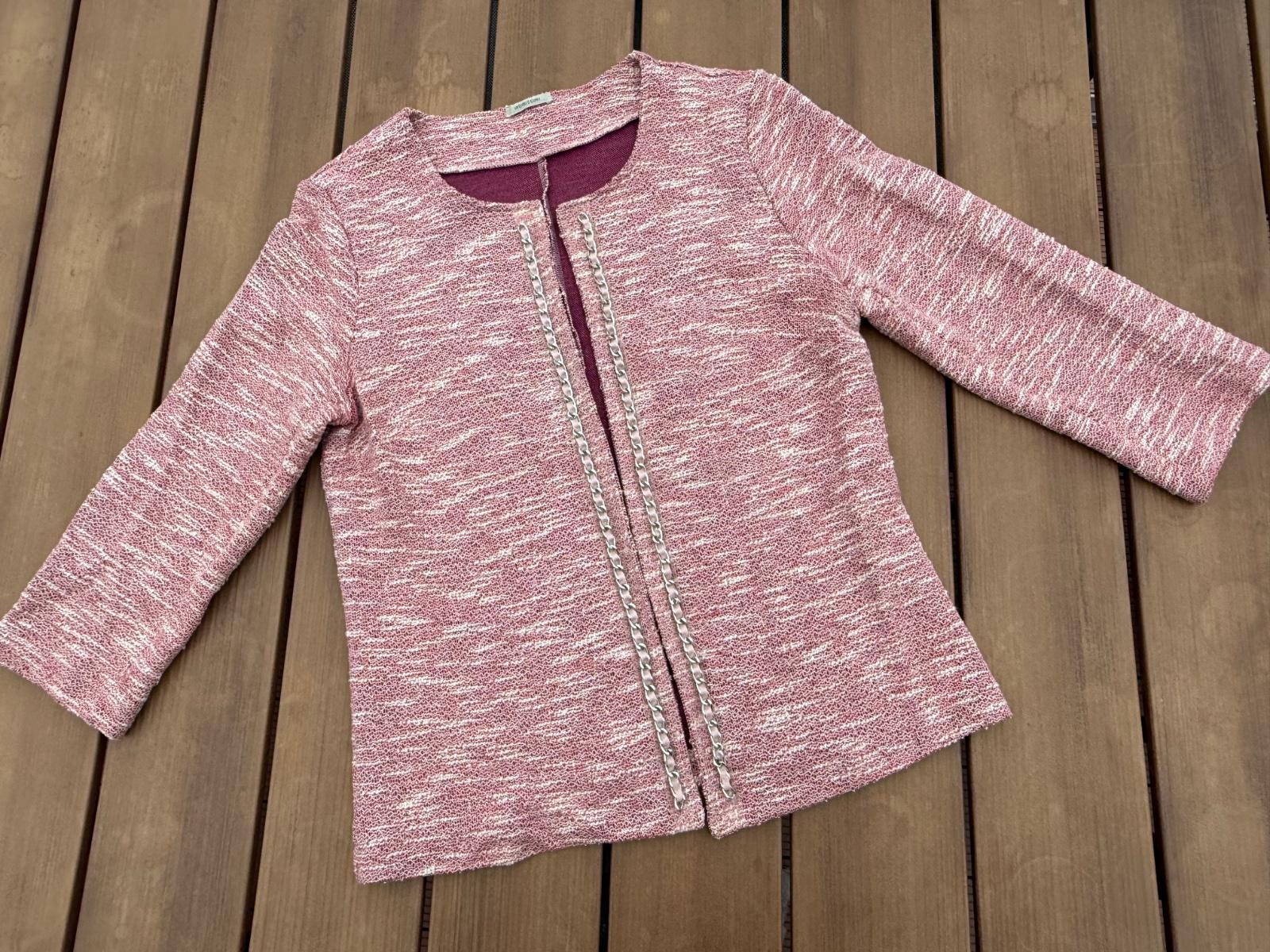 Ružovo-červene melírované sacko z tkaneho materiálu, nepodsite.