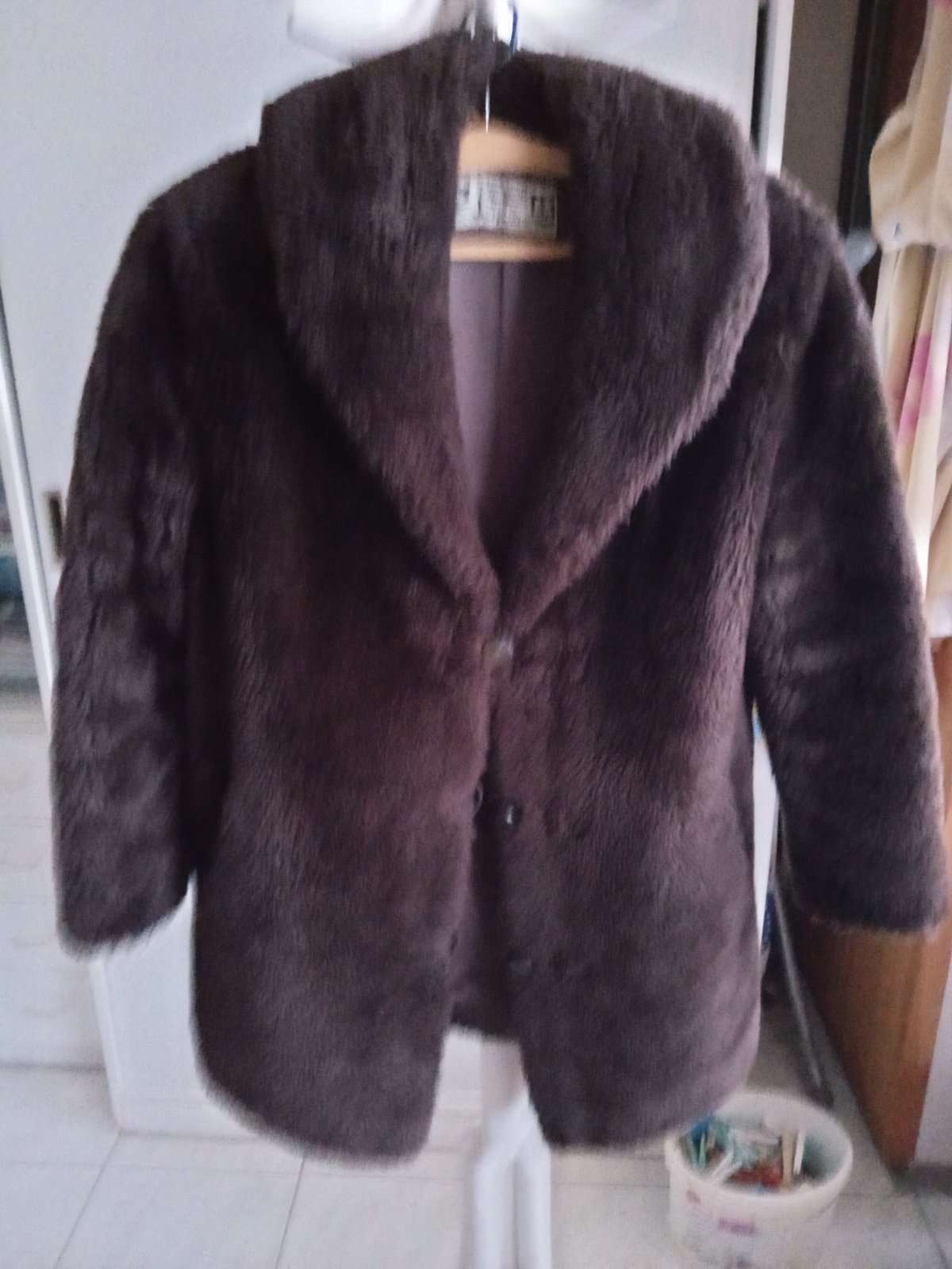 Veľmi pekný kabát, kvalitný,ľahký makkucky materiál, zvnútra celý s kožušinkou. Pekne strihaný, s dvoma vreckami. Zapínanie na. Zips, nepoškodený. Ja som veľmi schudla,je mi veľký. Pc vysoká.