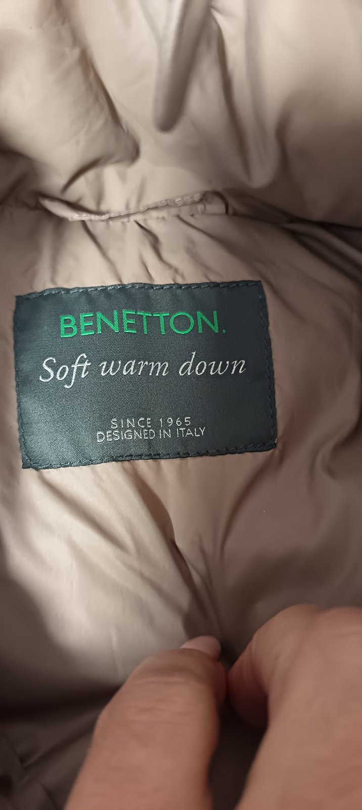 Krásna bunda zn. Benetton vo výbornom stave, dá sa nosit s páskom alebo bez neho, kapuca sa dá stiahnut, vel. písaná 48 sedí tak na M/L, najlepšie podla rozmerov dlzka od krku 69cm, šírka medzi paz...