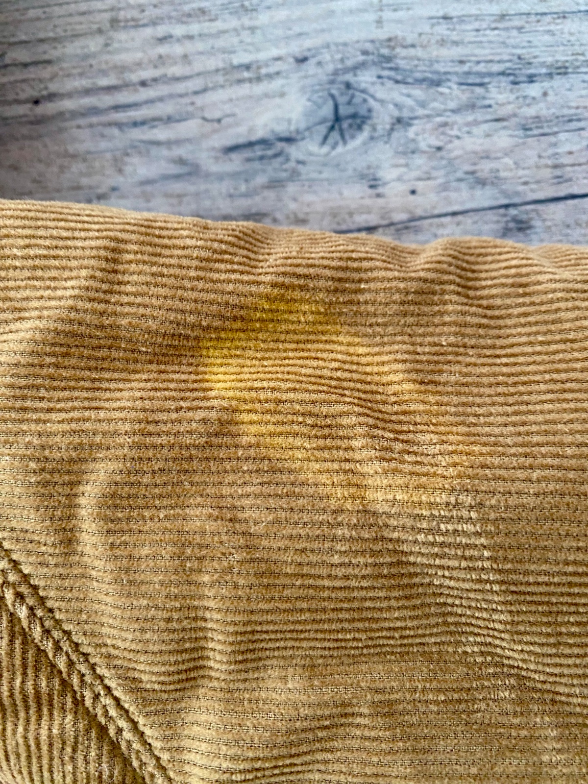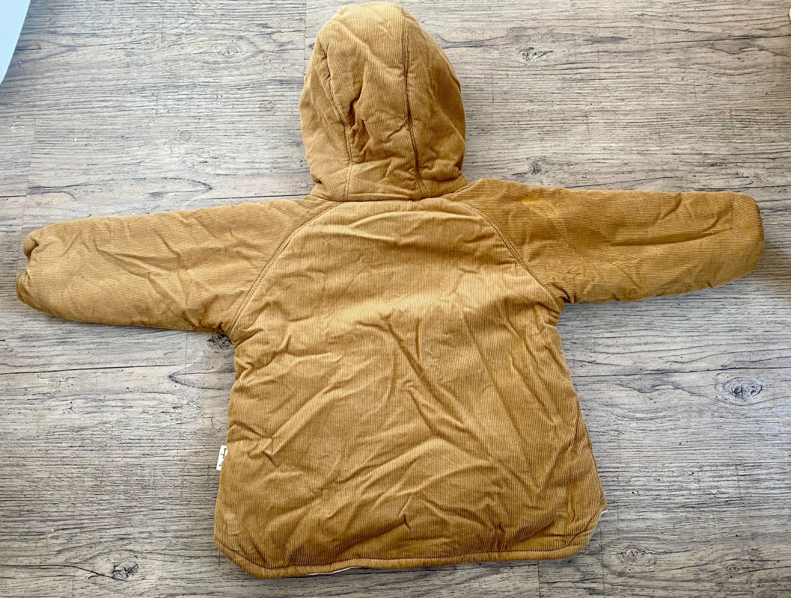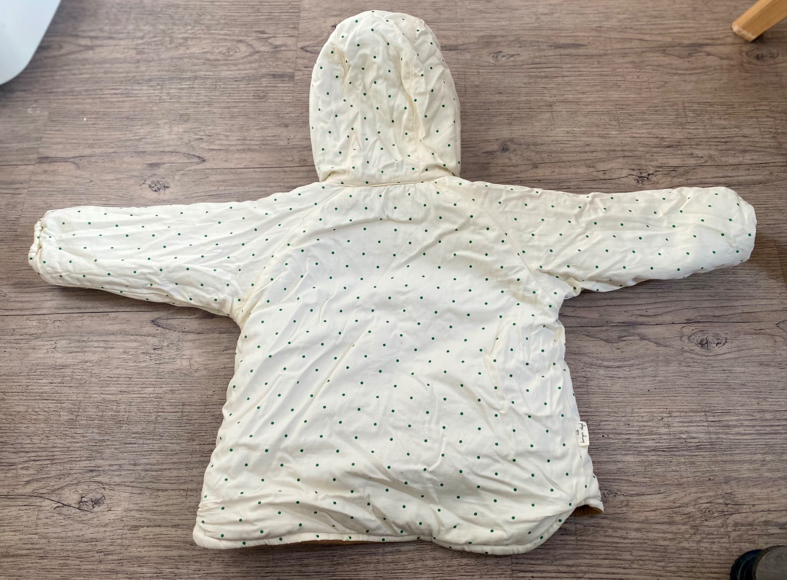 Fľak na kapucni na hnedej strane (uvedené na fotke)