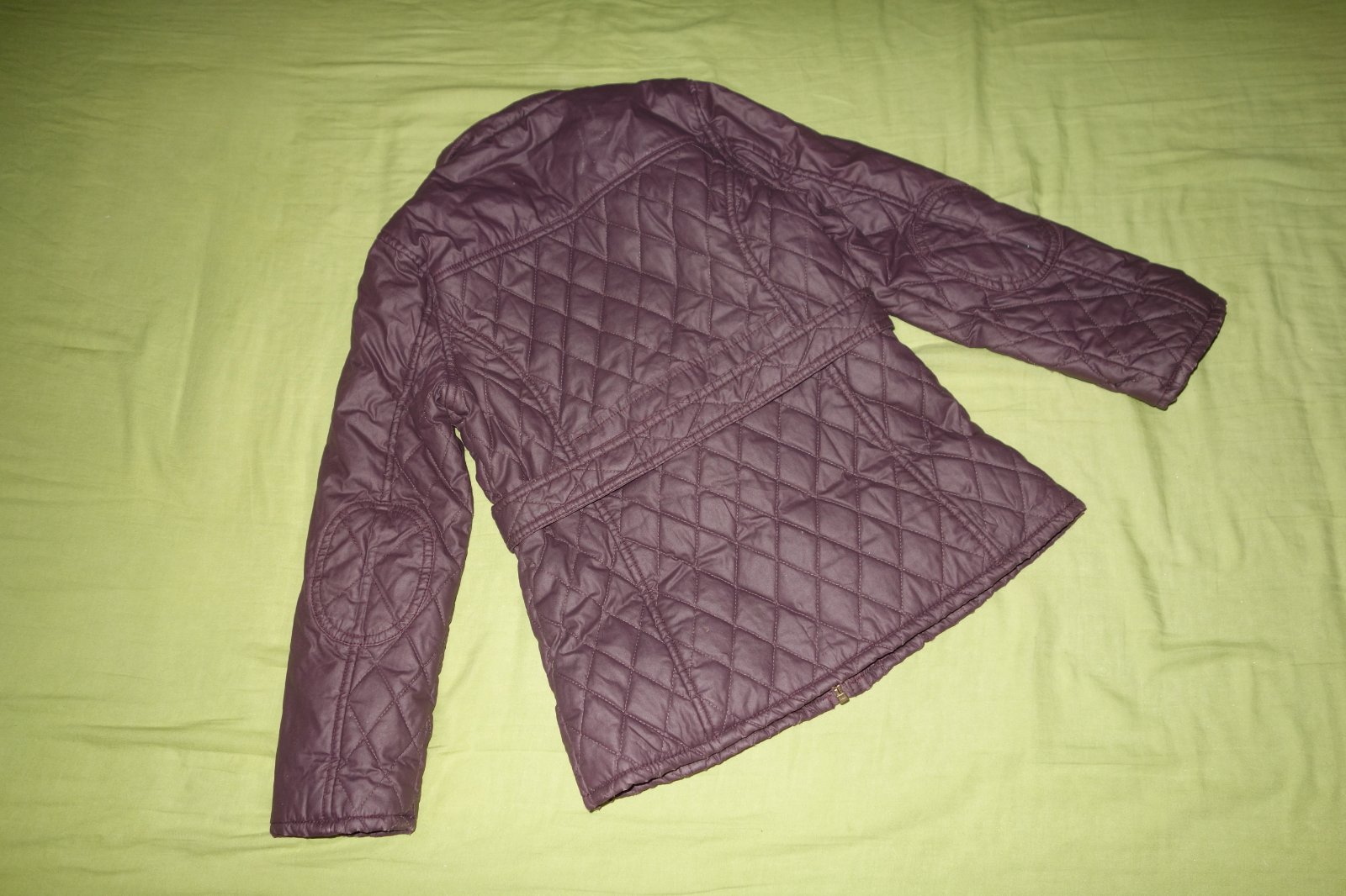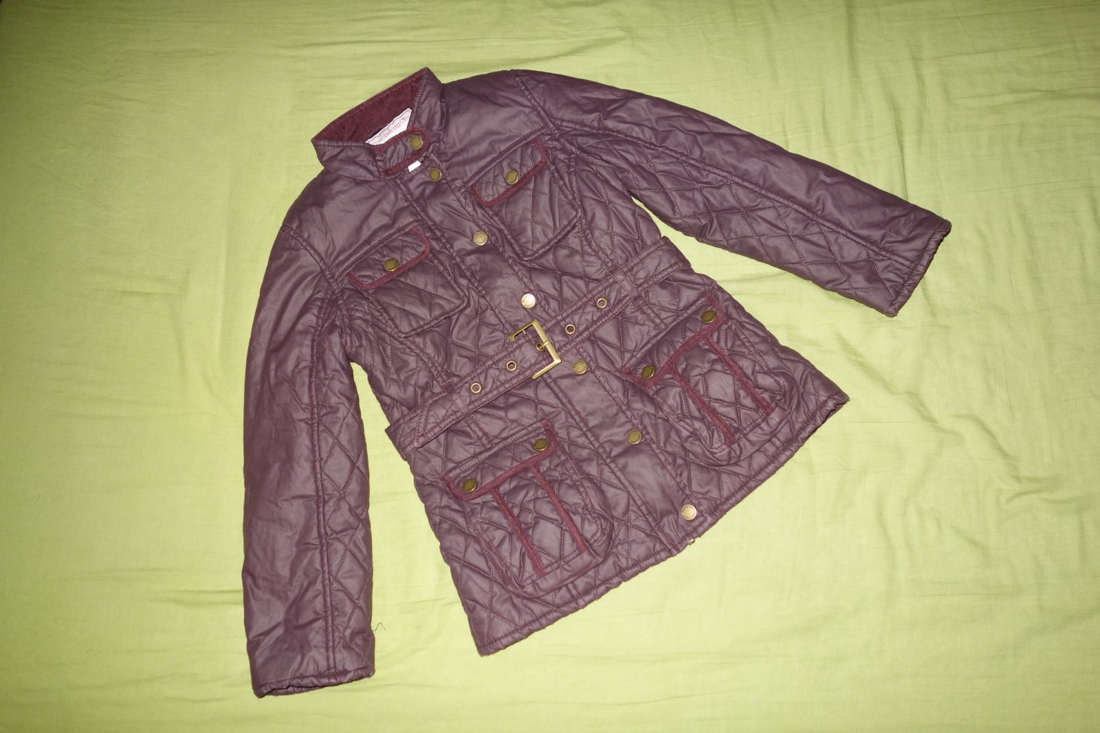 Pekna presivana bundicka vo velmi dobrom stave. Je nepremokava, vrchna latka je napustena takou nepremokavou vrstvou. Je zimna, ale nie je uplne hrubizna, skor do miernej zimy.