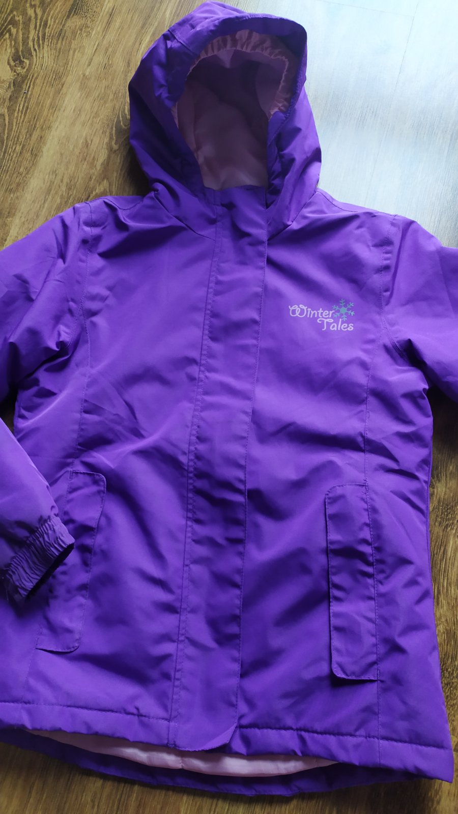 Teplá a nepremokavá lyžiarska bunda s kapucňou, výborný stav. Reflexné prvky, snežný pás, vrecko na skipas na rukáve. Veľkosť 134/140.