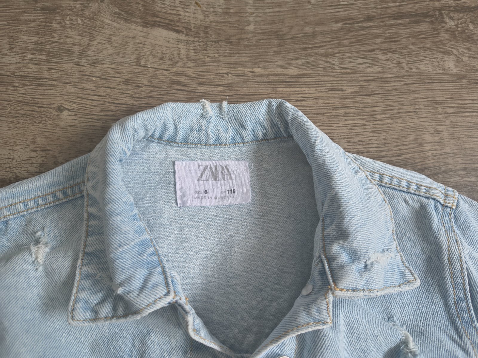 Predám perfektnú frajerskú rifľovú bundičku Zara , v TOP stave. Veľkosť 116/6 rokov, rozmery dĺžka 37c,. rukáv 37 cm. chrbát 35cm, šírka 37cm.