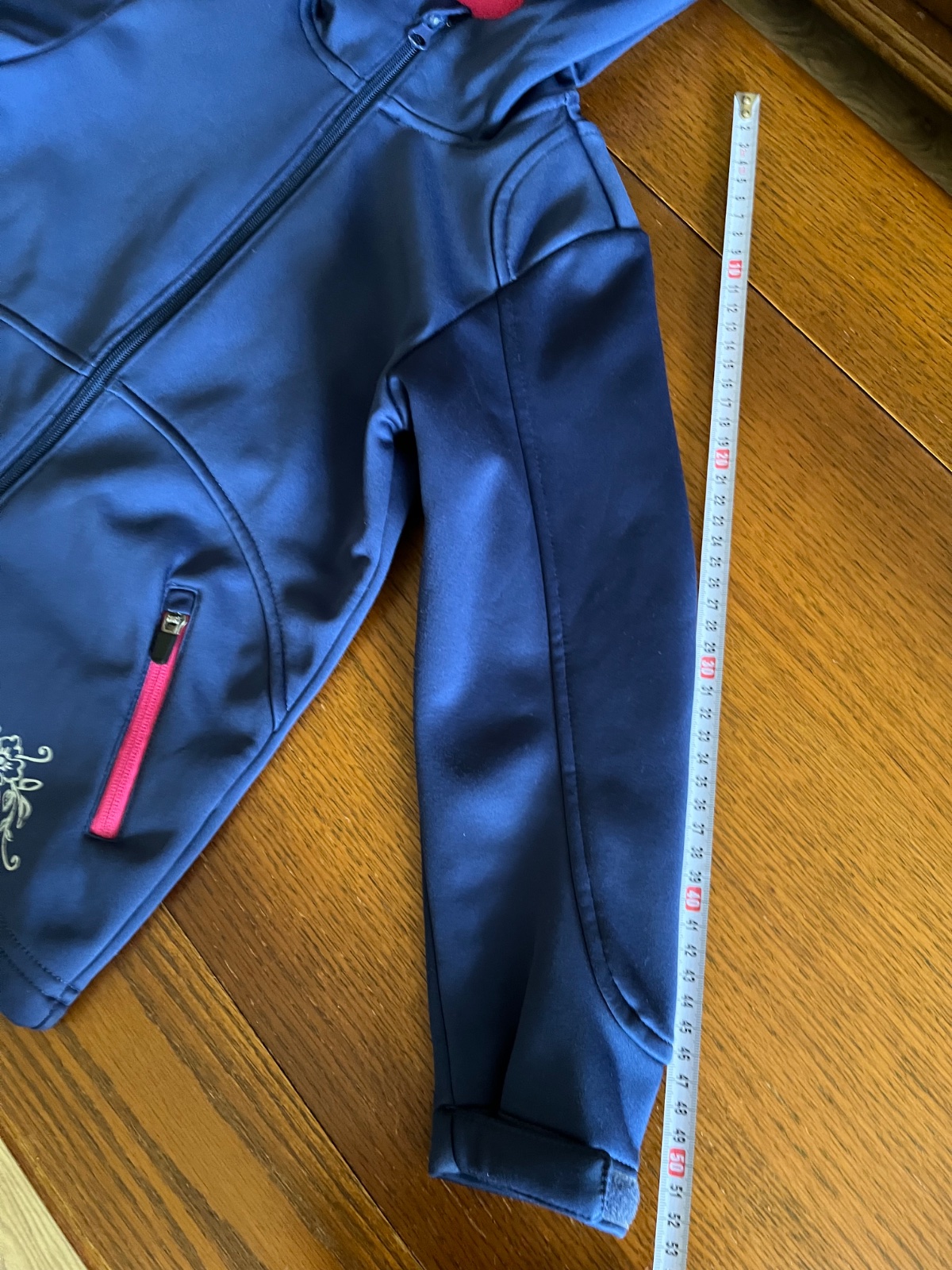 Bunda odolná voči vetru, vnútro je zateplené, vrátane rukávov. Vpredu reflexný ozdobný prvok. Naspodku zvnútra je regulácia na sťahovanie.