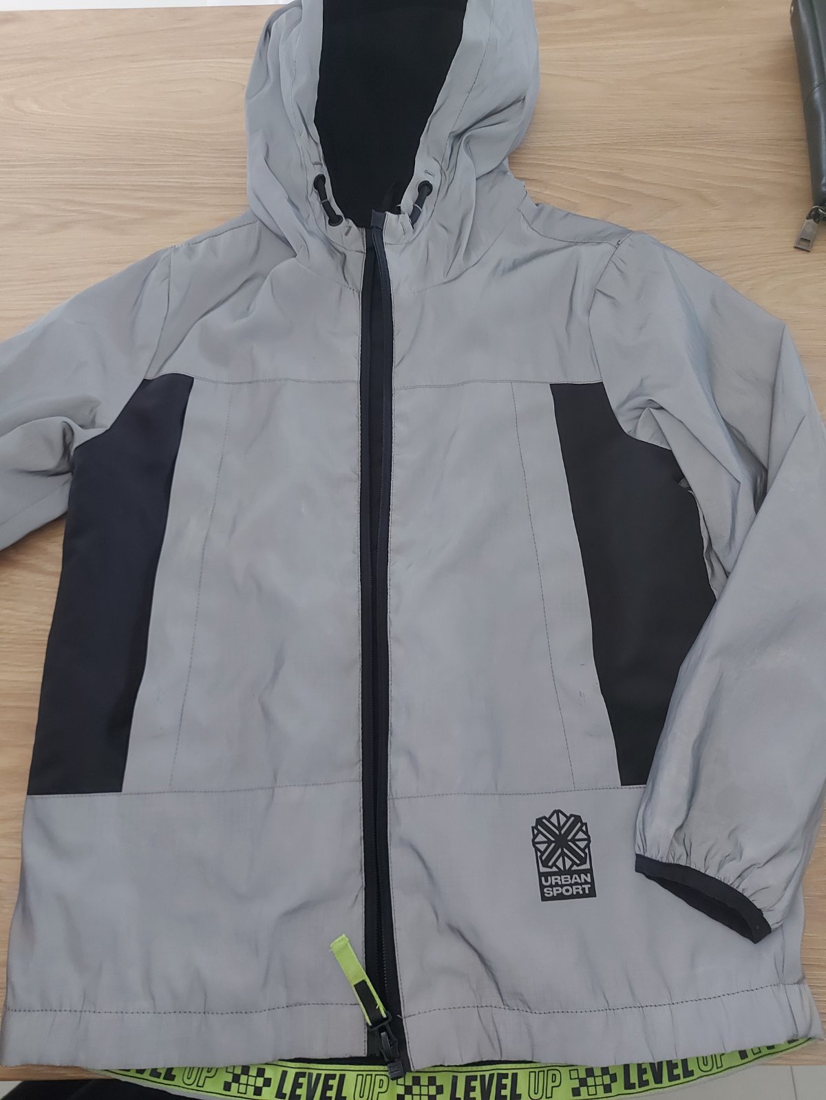 Veľmi dobrý stav, vetrovka je celá reflexná v tme. Písaná je 9 - 10 rokov. Dĺžka 60 cm, pod pazuchami 46 cm dĺžka rukáv 52 cm. Cena 13 eur +poštovné